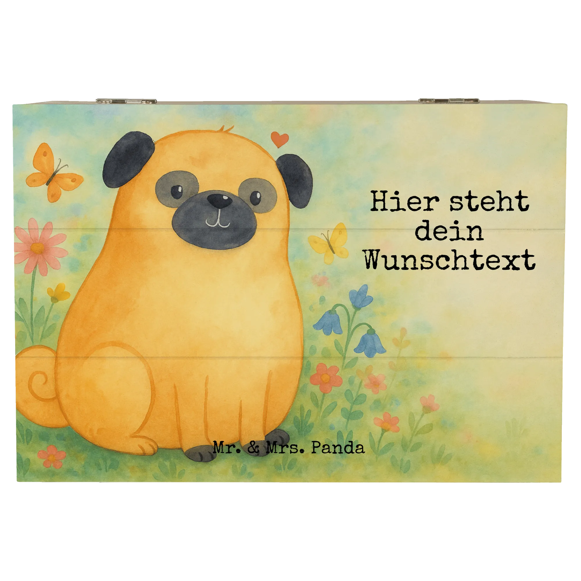 Personalisierte Holzkiste Mops Design - 22 x 15 cm