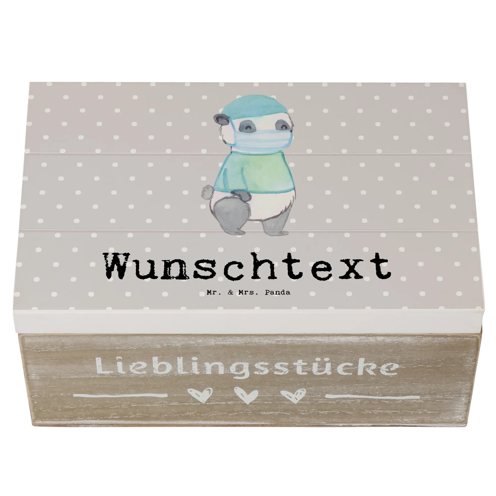 Entdecke die charmante personalisierte Holzkiste 'Operationsassistent mit Herz' von Mr. & Mrs. Panda – ein perfektes Geschenk für all die wundervollen Operationsassistenten da draußen!