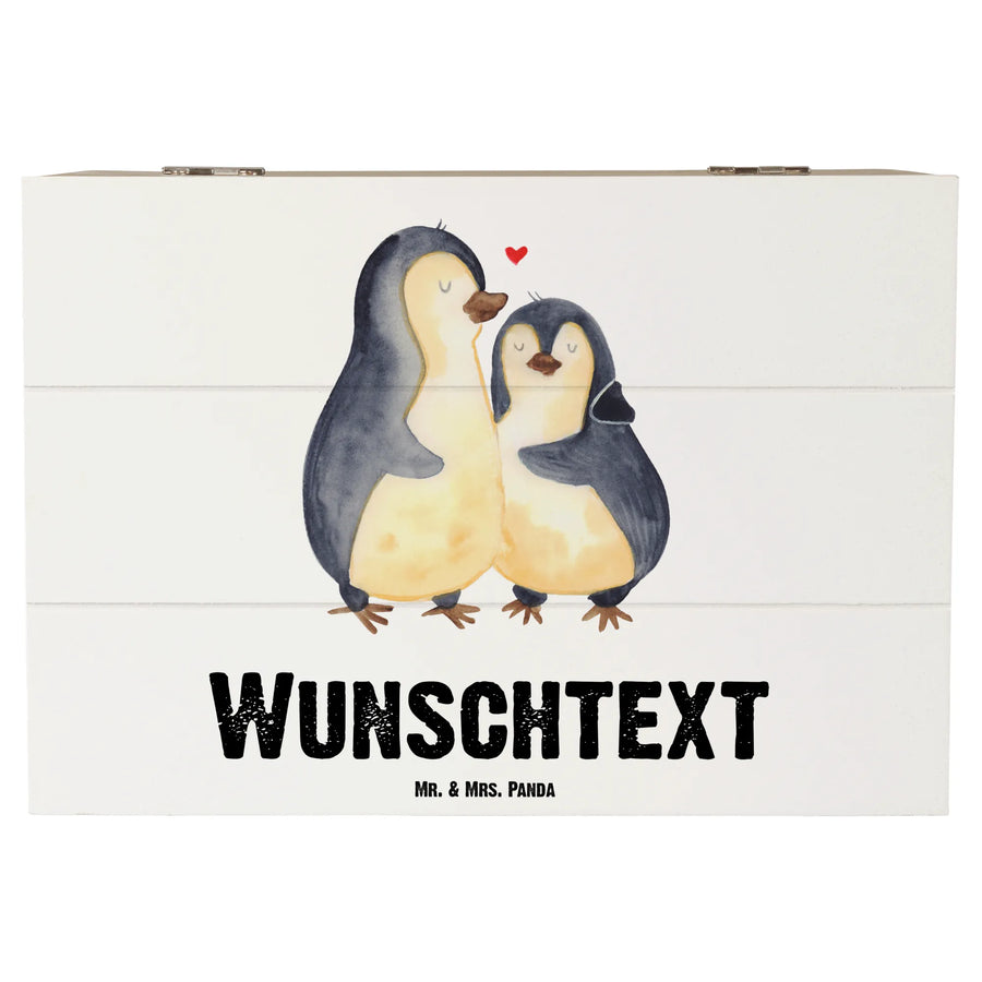 Besonders eine individualisierte Kiste ist ein perfektes Geschenk zur Hochzeit, für den Geburtstag deines Partners oder einfach nur, um "Danke" zu sagen. Mit dem süßen Motiv der zwei Pinguine, die sich fest umarmen, wird jeder Ehemann, Lebensgefährte oder Freund gerne an die gemeinsame Zeit erinnert.