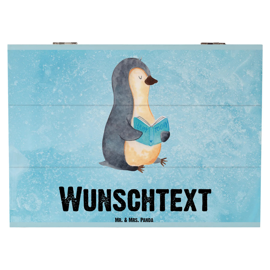 Personalisierte Holzkiste Pinguin Buch - 25 x 18 cm - Eisblau