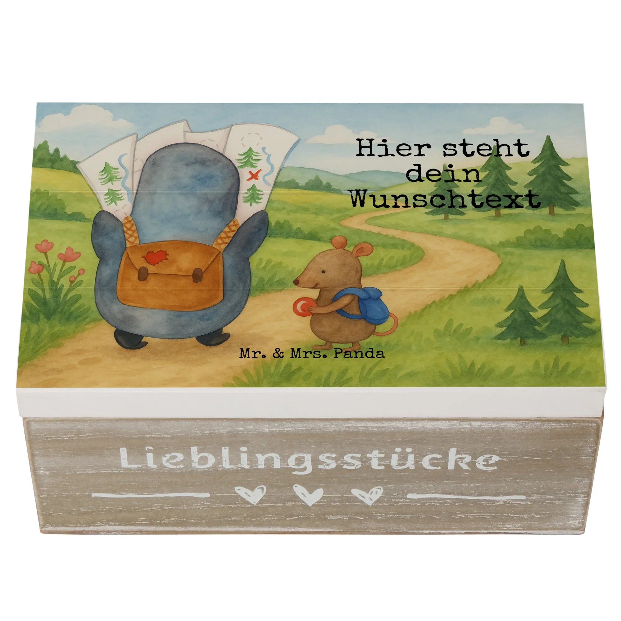 personalisierte holzbox Pinguin & Maus Wanderer Design - 22 x 15 cm