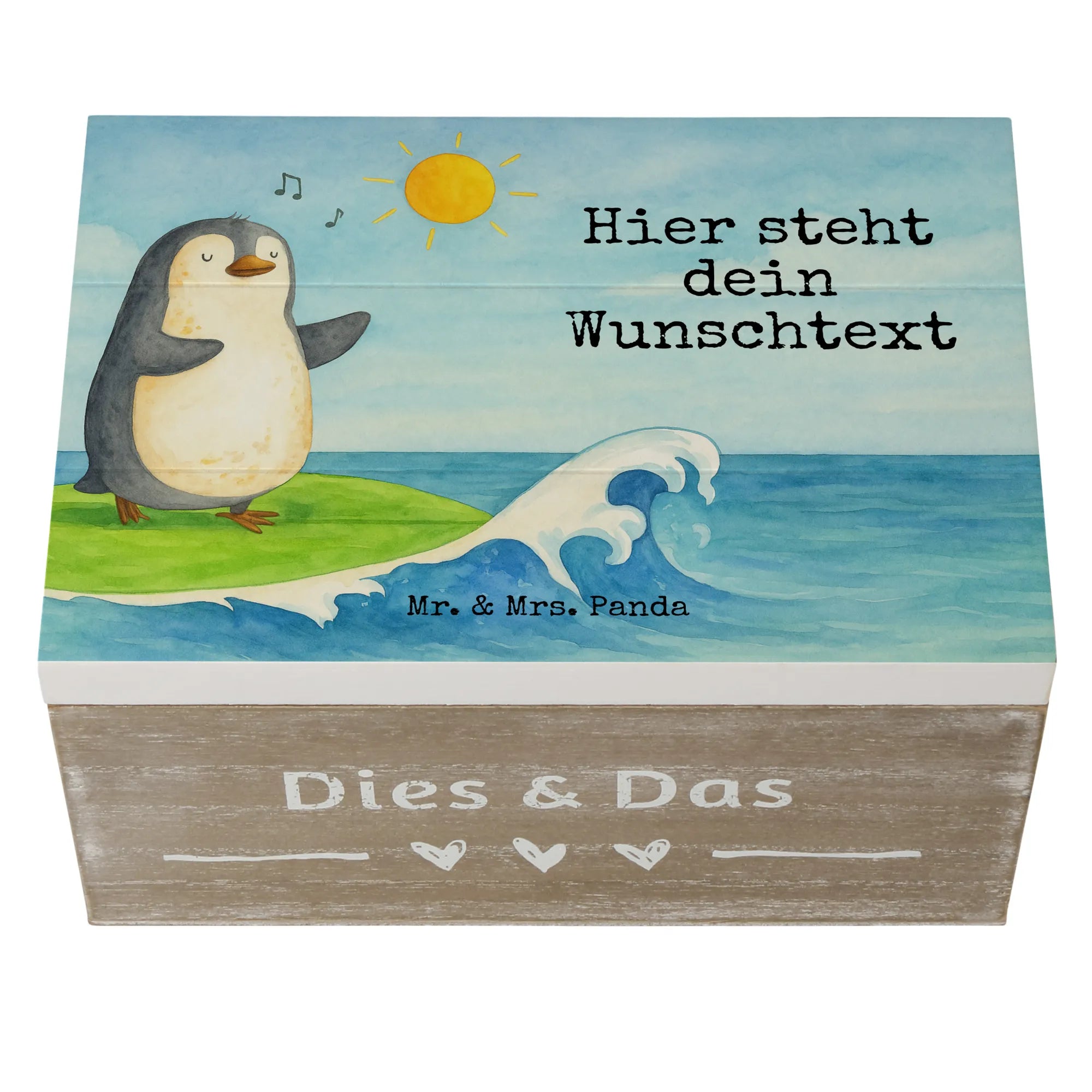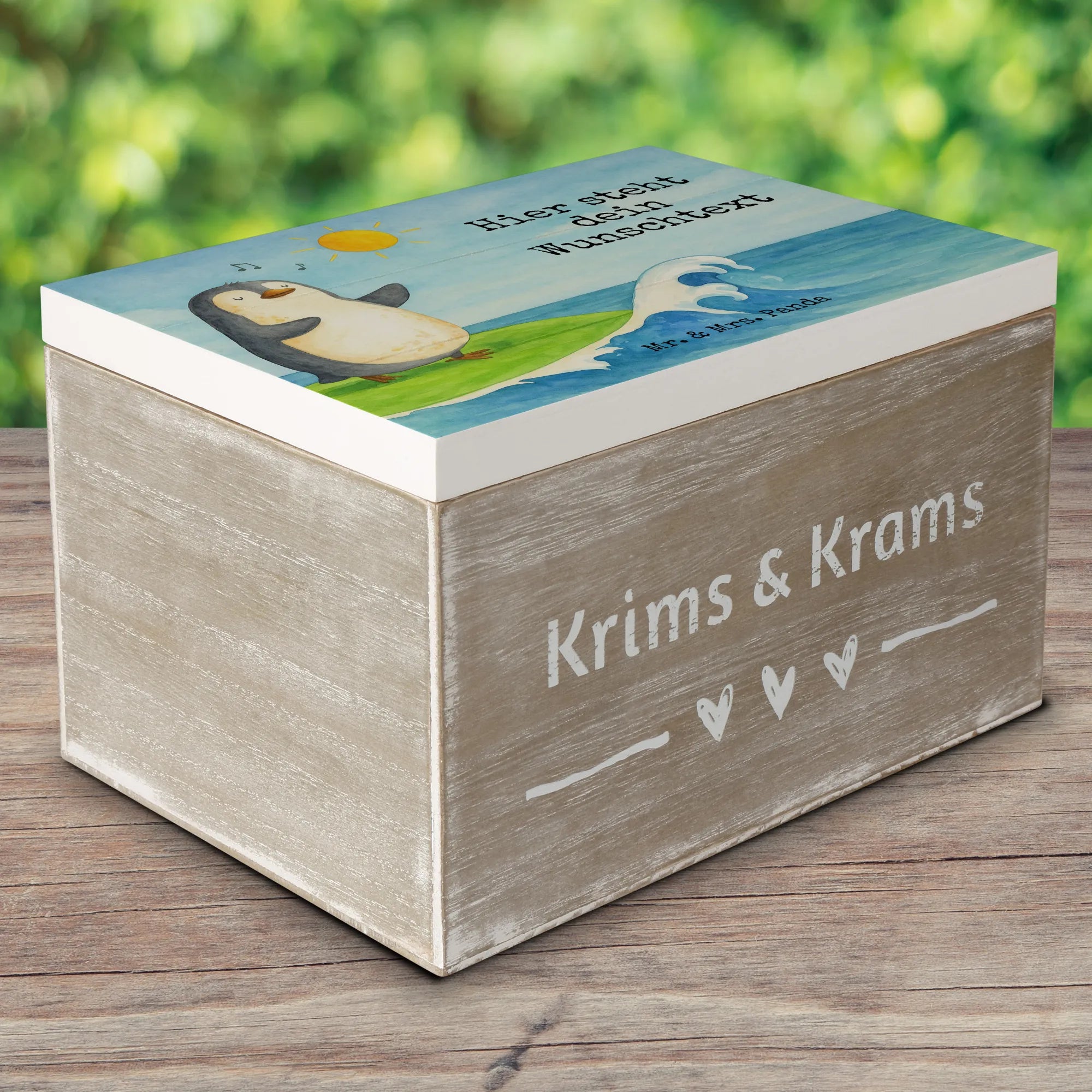 Holzbox mit Namen Pinguin Surfer Design - 22 x 15 cm