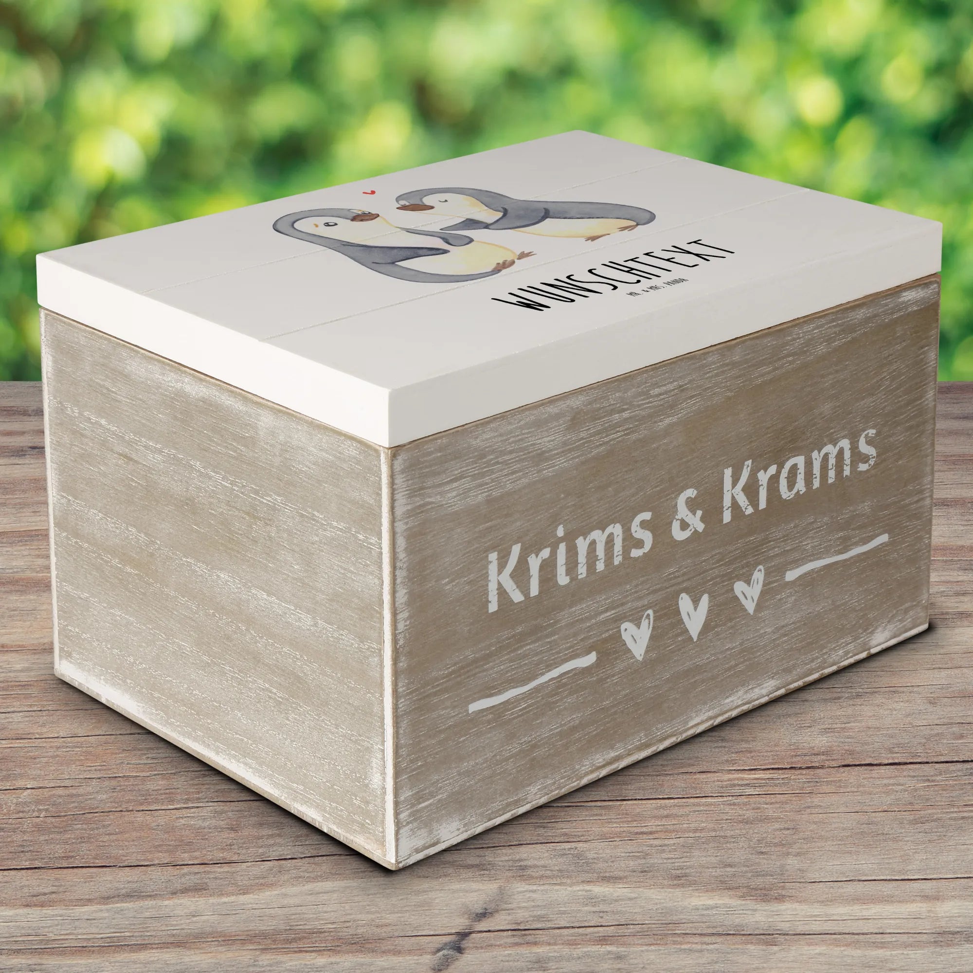 Die personalisierte Holzkiste mit dem liebevollen Motiv 'Pinguine trösten' ist das perfekte Geschenk für deine Liebsten. Ob zum Valentinstag, Jahrestag oder einfach als kleines Mitbringsel für deine Freundin oder deinen Freund – diese Schatzkiste wird Herzen höher schlagen lassen!
