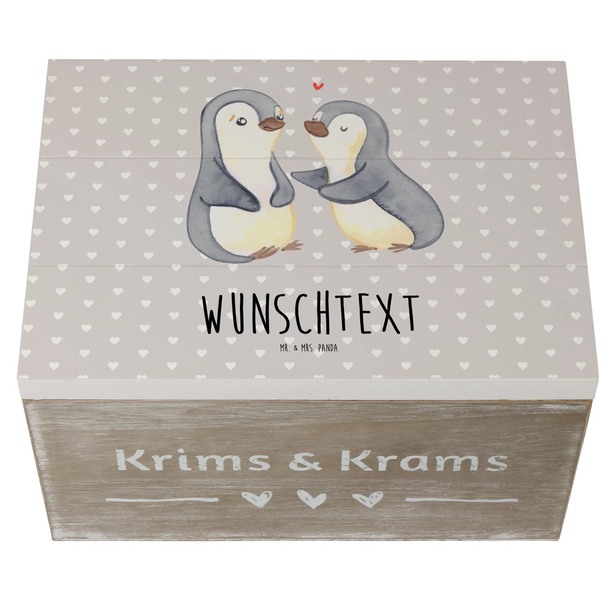 Die personalisierte Holzkiste mit dem Motiv 'Pinguine trösten' von Mr. & Mrs. Panda ist das perfekte Geschenk für die Menschen, die dir am Herzen liegen. Diese wunderschöne Schatzkiste ist nicht nur ein praktischer Aufbewahrungsort für besondere Erinnerungen, sondern auch ein liebevolles Liebesgeschenk. Ob für den Valentinstag, einen Jahrestag oder als Geschenk für deine Freundin oder deinen Freund - diese Kiste wird garantiert für strahlende Augen sorgen.