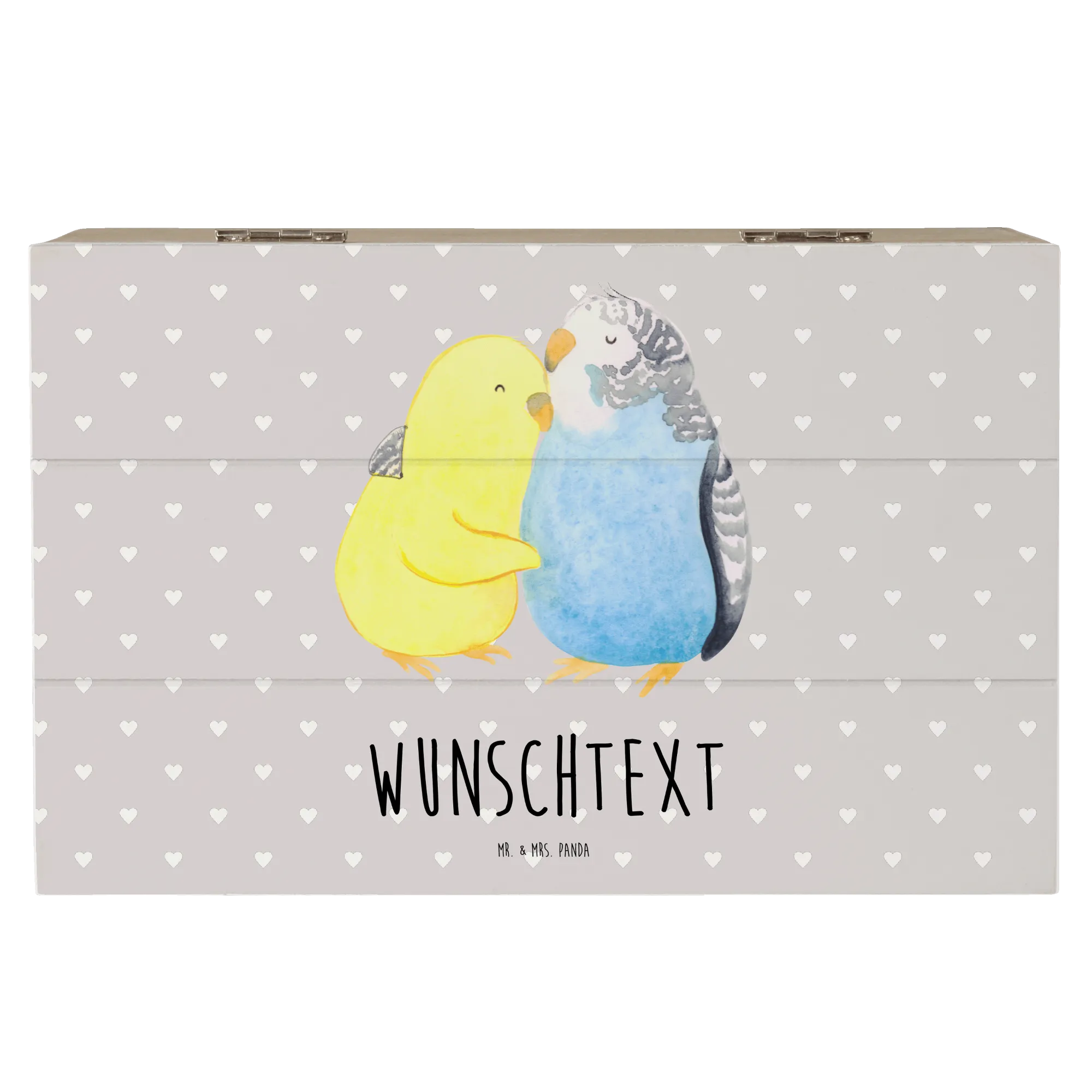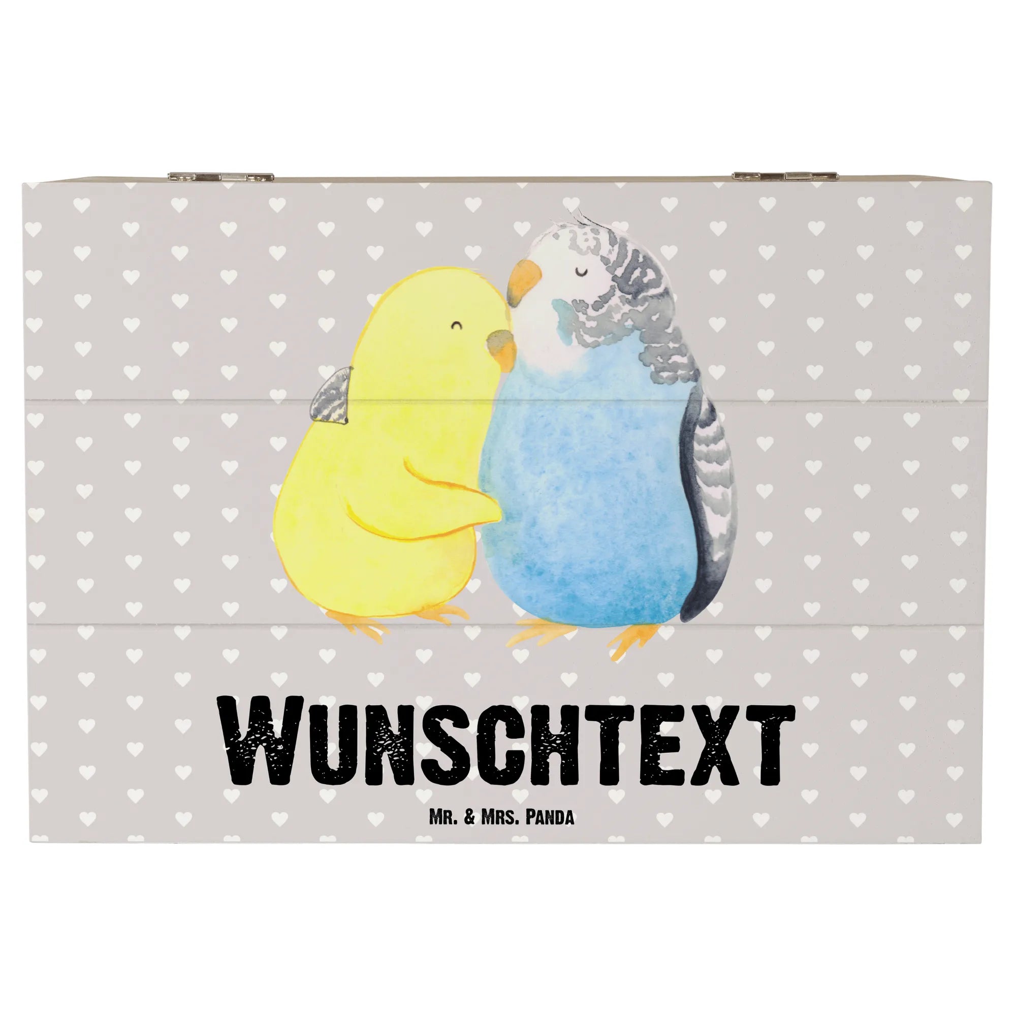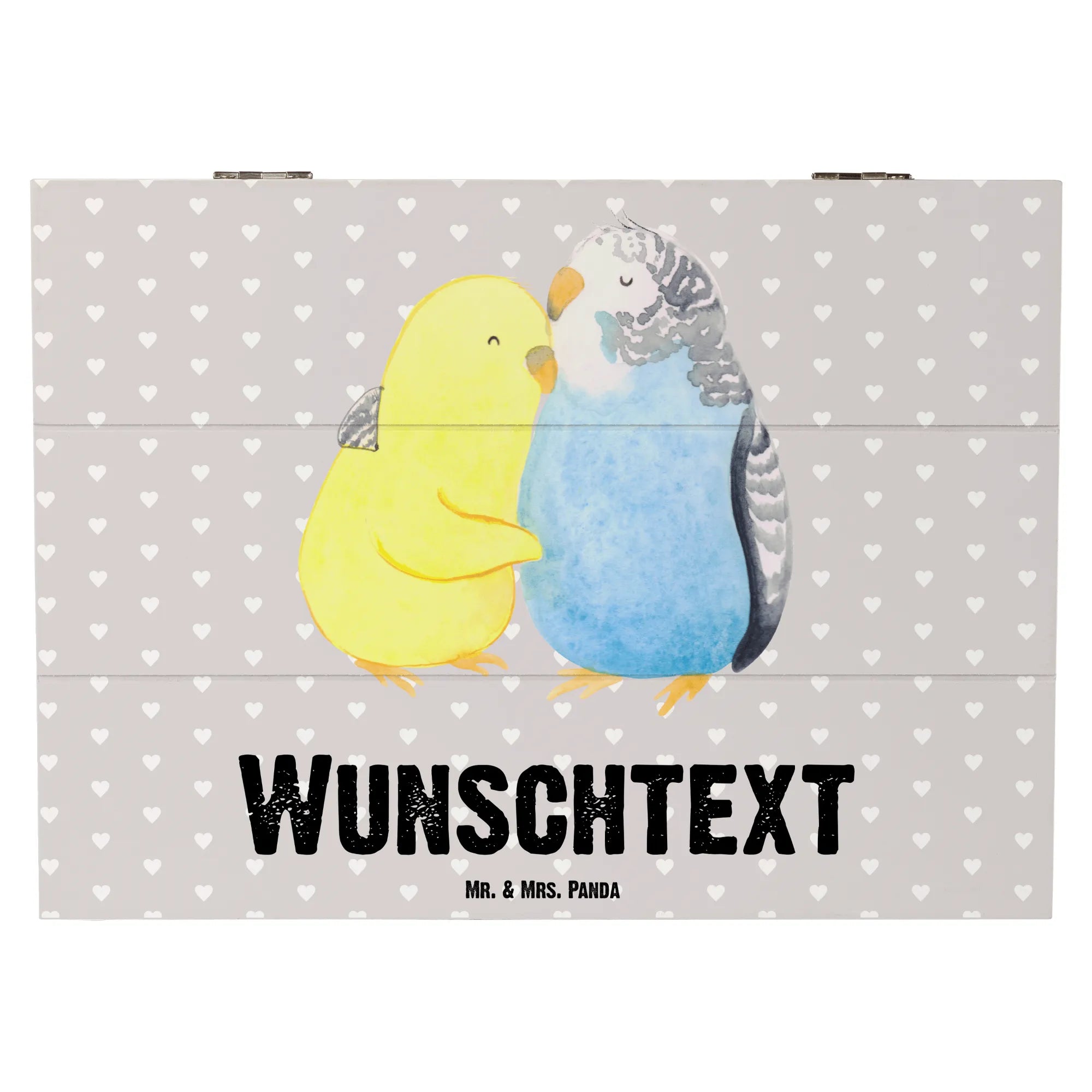 Personalisierte Holzkiste Wellensittich Liebe – Mr. & Mrs. Panda