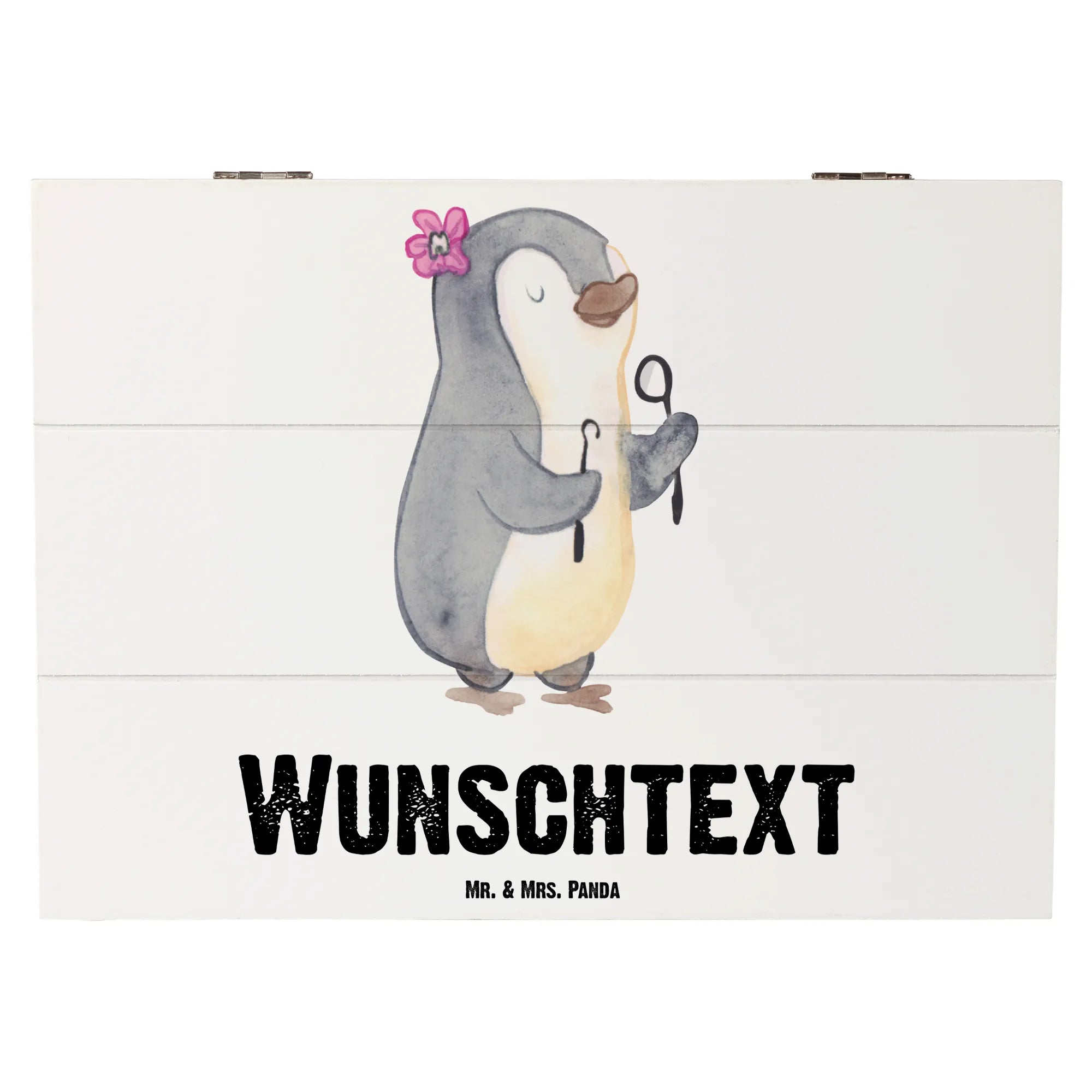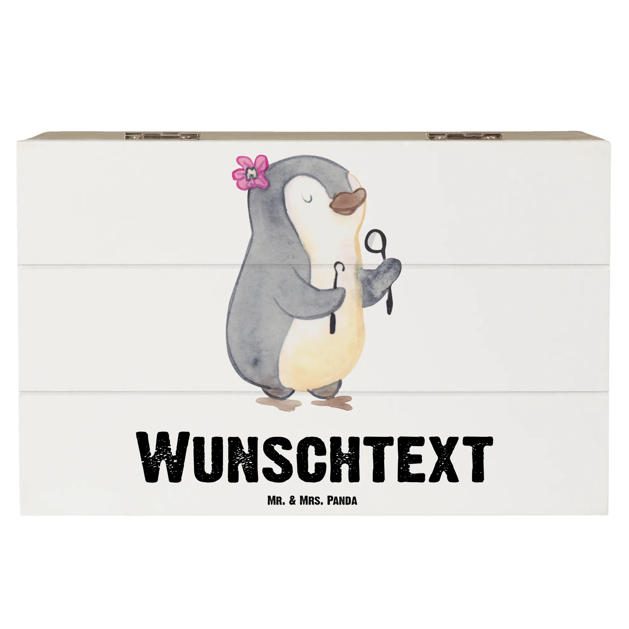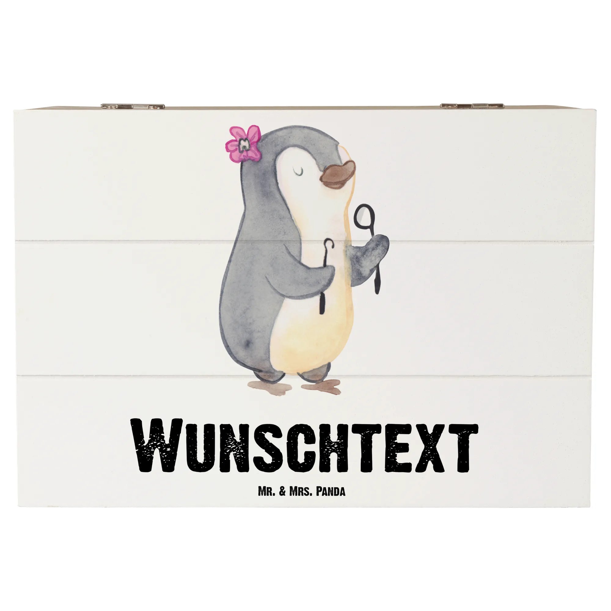 Das handgezeichnete Design von Mr. & Mrs. Panda bringt mit seiner verspielten Note Freude in jeden Raum. Diese personalisierte Kiste ist ein ganz besonderes Geschenk für zahlreiche Anlässe wie zum Beispiel zum Berufsabschied, zur Rente oder einfach nur, um "Danke" zu sagen.