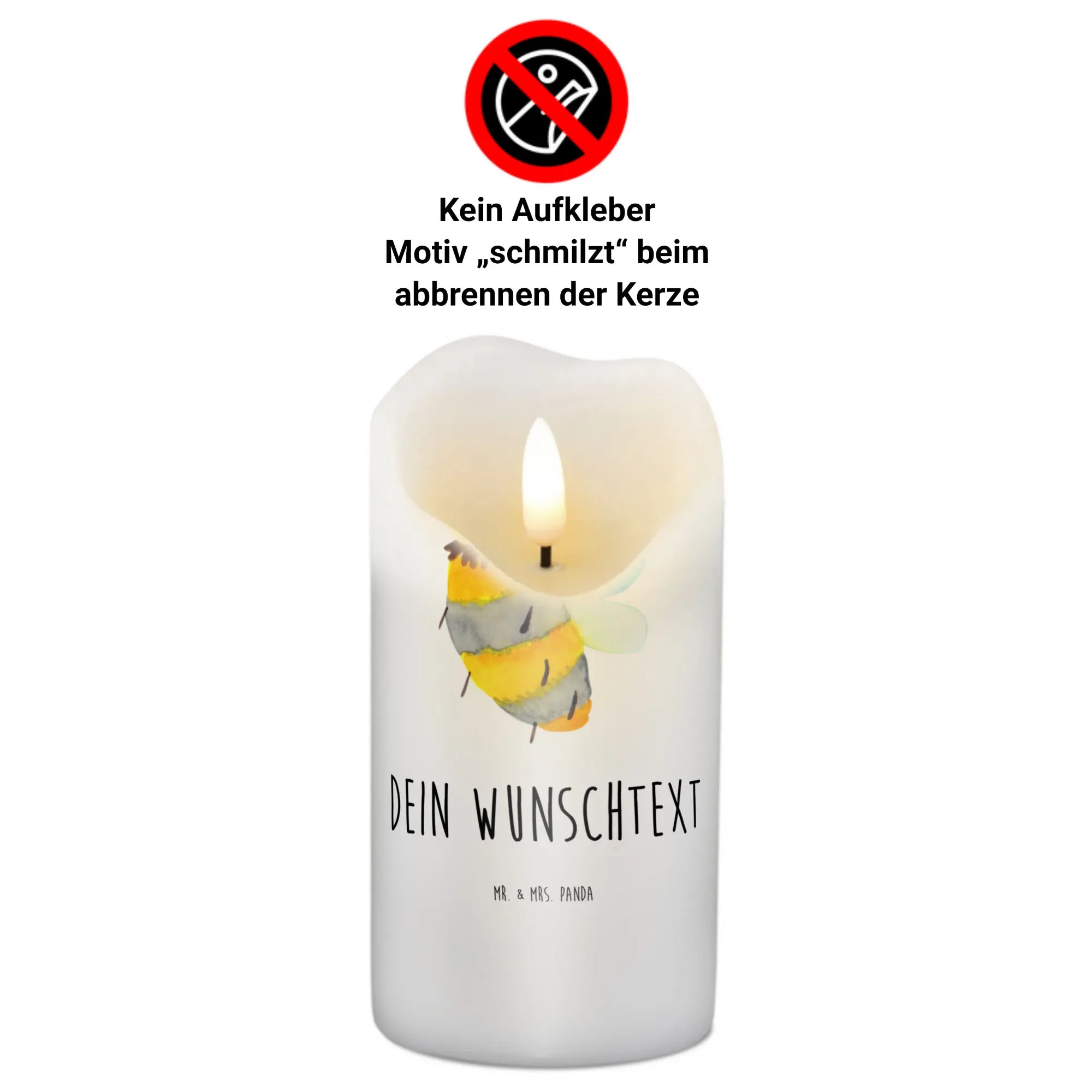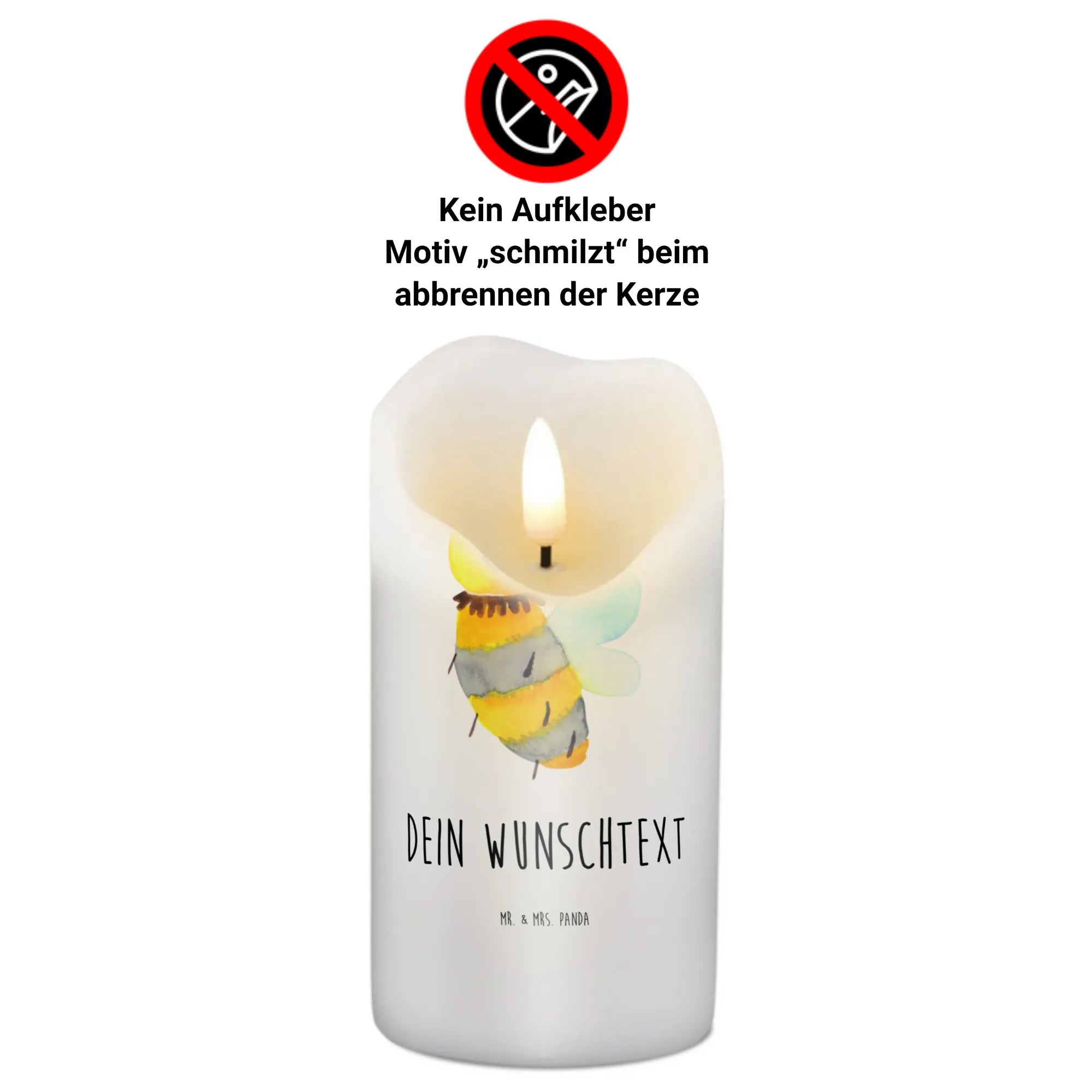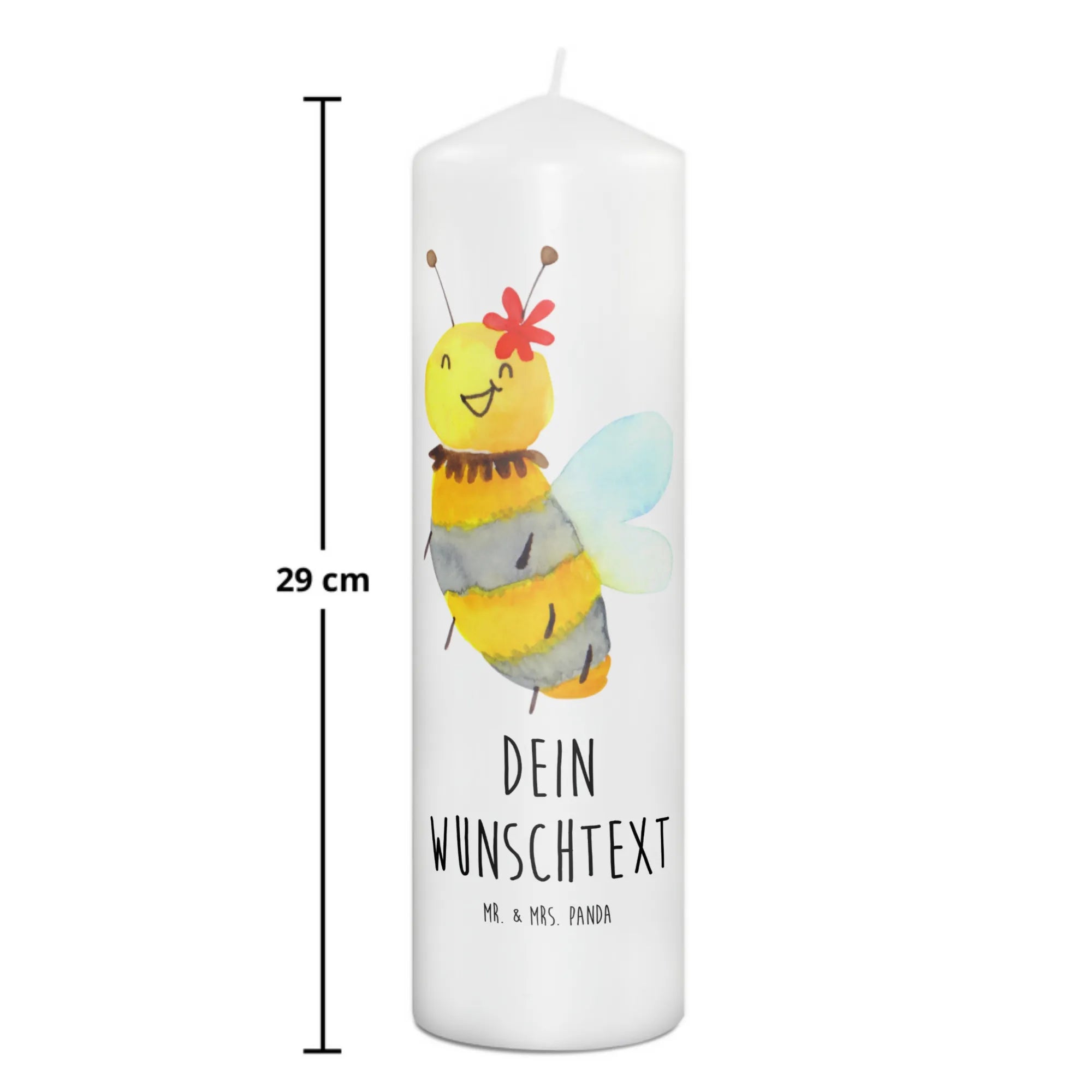 Die Bienen Kollektion von Mr. & Mrs. Panda ist eine Sammlung aus liebevoll handgezeichneten Designs, die zu jedem Anlass passen. Lass Dich von der Fröhlichkeit der Biene und der Blume verführen und genieße die besondere Atmosphäre, die diese personalisierte Kerze schafft.