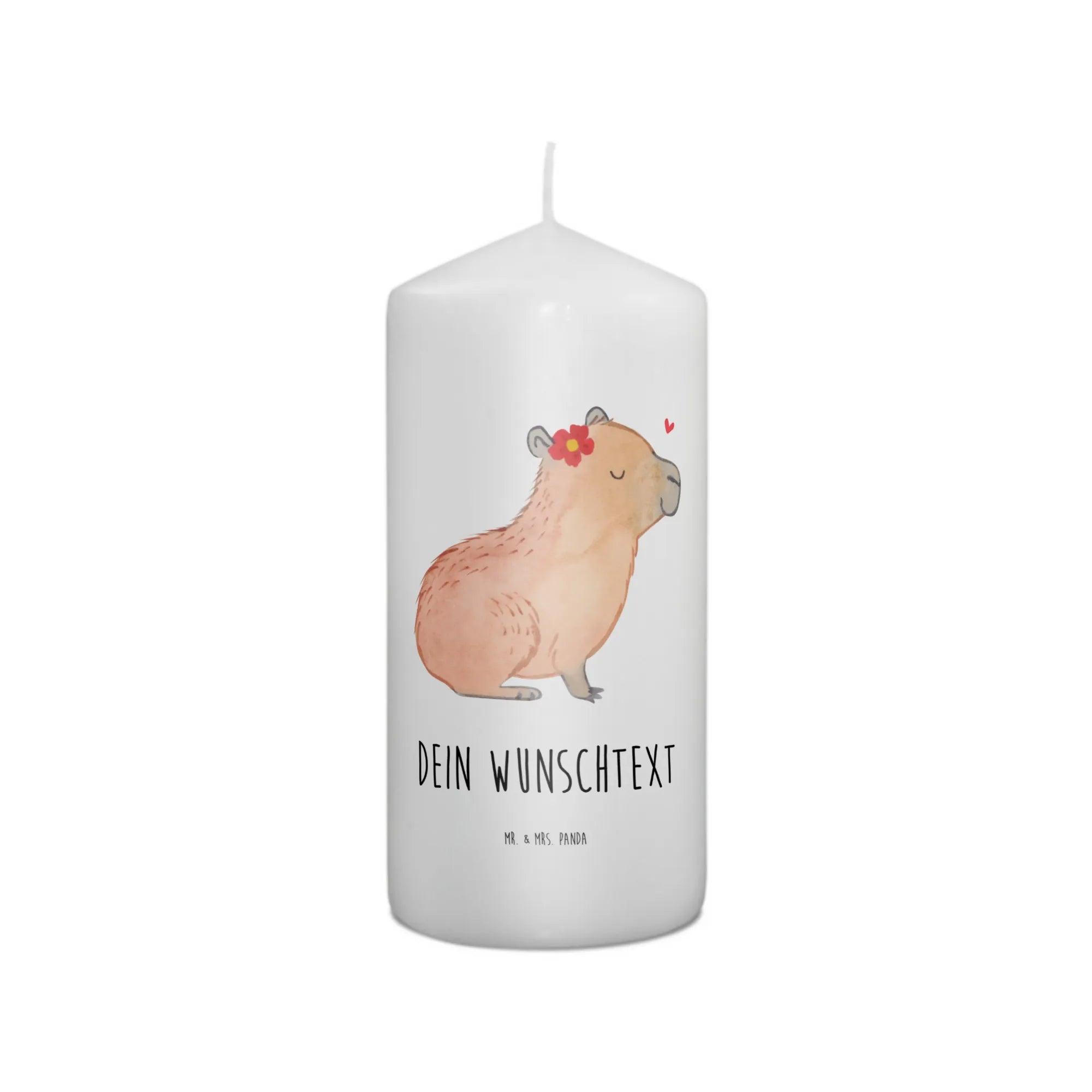 Die personalisierte Kerze mit dem bezaubernden Motiv Capybara Blume von Mr. & Mrs. Panda ist das perfekte Geschenk für jeden Anlass! Egal ob zur Taufe, Kommunion, zum Geburtstag oder einfach als liebevolles Mitbringsel – diese Kerze verzaubert durch ihre liebevolle Gestaltung und individuelle Anpassbarkeit. Das schönste an dieser Kerze ist das handgezeichnete Motiv eines entspannenden Capybaras mit einer süßen Blume im Haar und einem kleinen Herzchen darüber. Dieses niedliche Tier strahlt eine unheimliche Wärme und Freude aus, die jeden Raum zum Strahlen bringt.