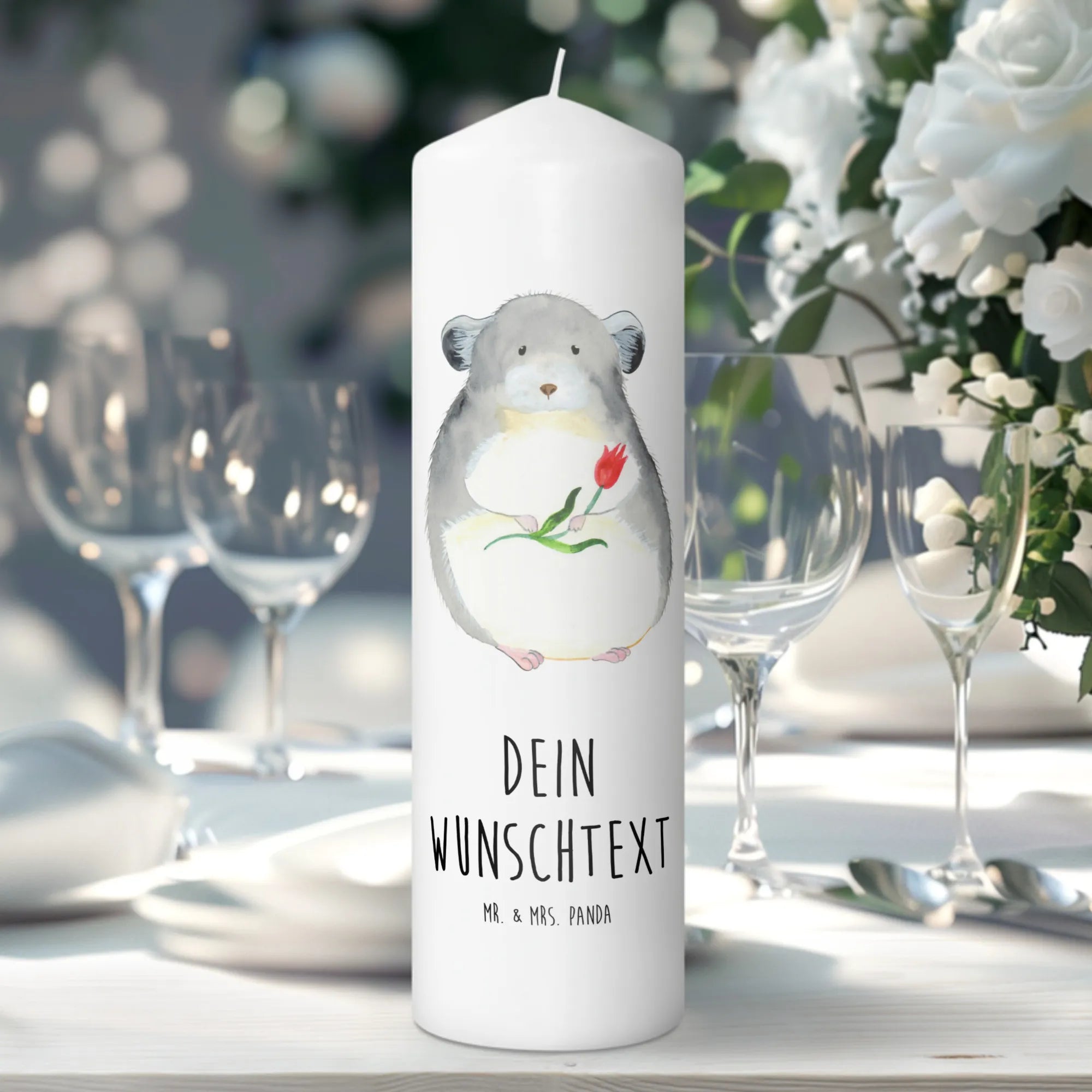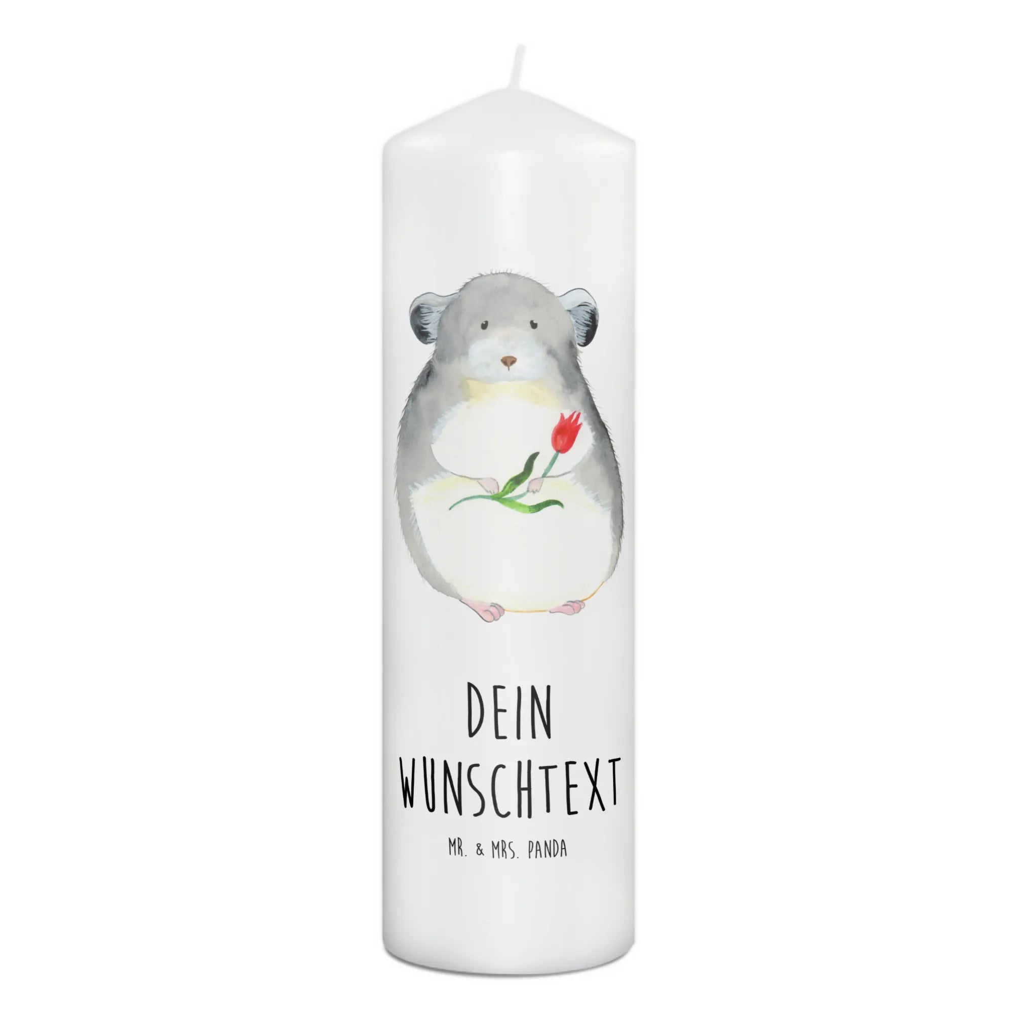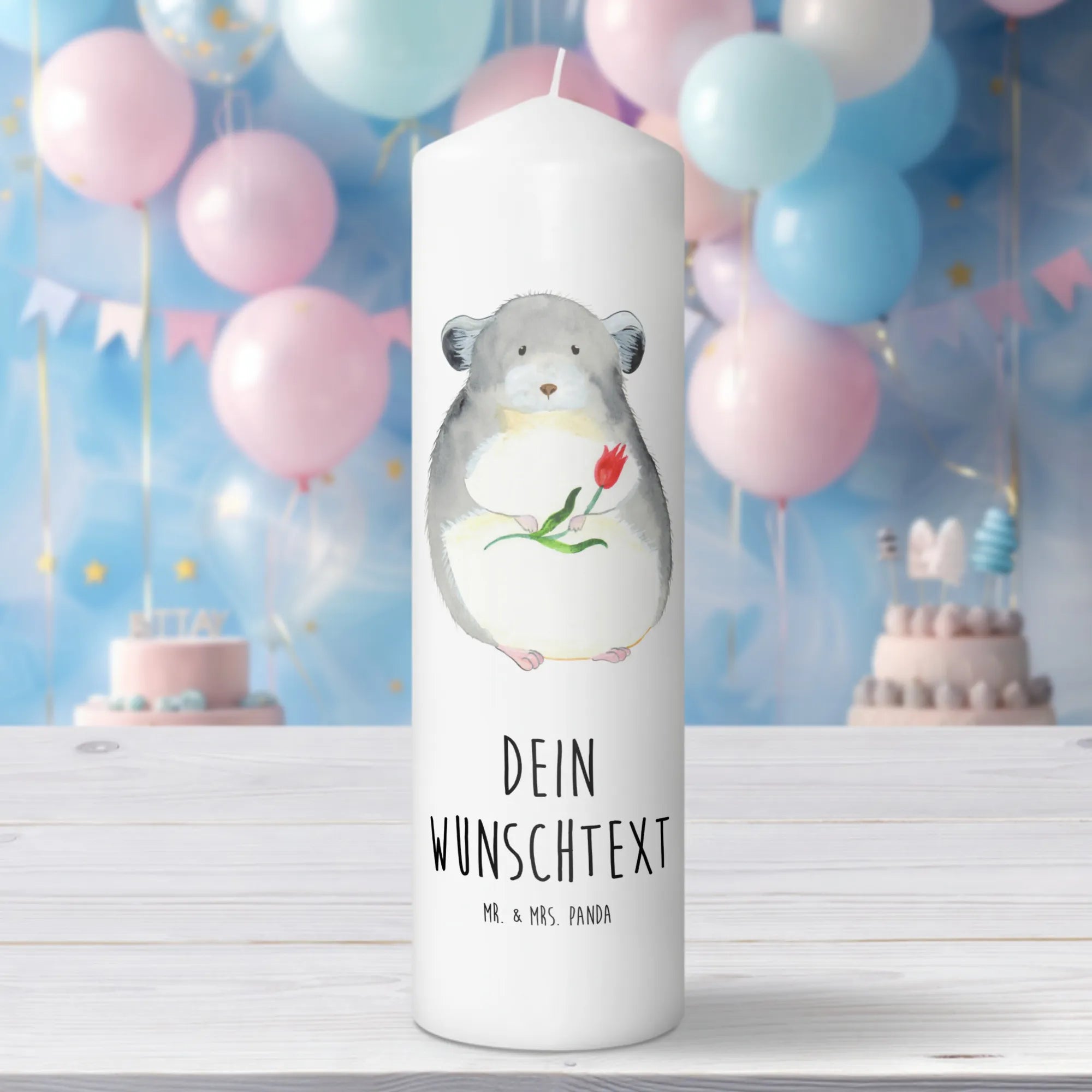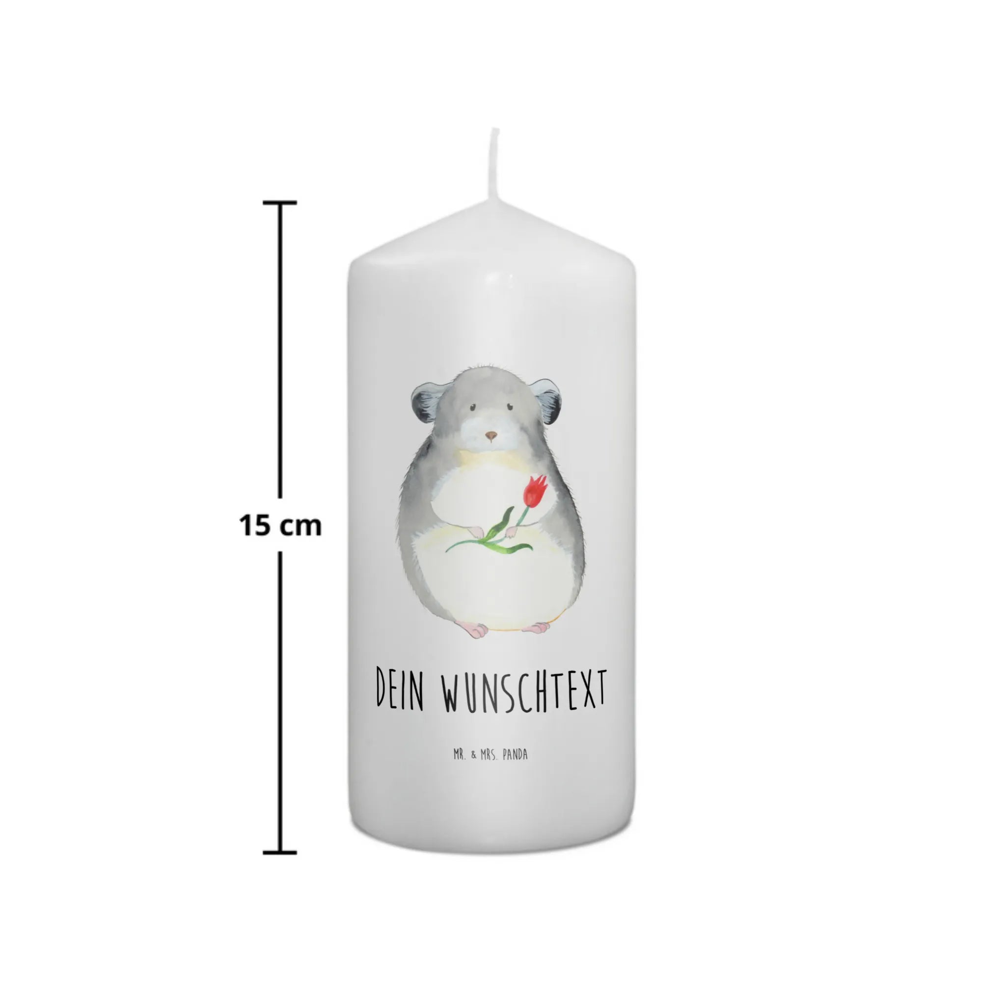 Suchst du nach einem ganz besonderen Geschenk? Dann ist die personalisierte Kerze "Chinchilla mit Blume" aus der zauberhaften Small World Kollektion von Mr. & Mrs. Panda genau das Richtige für dich! Diese Kerze bringt nicht nur Licht ins Dunkel, sondern verbreitet auch Freude und eine positive Stimmung in jedem Raum.