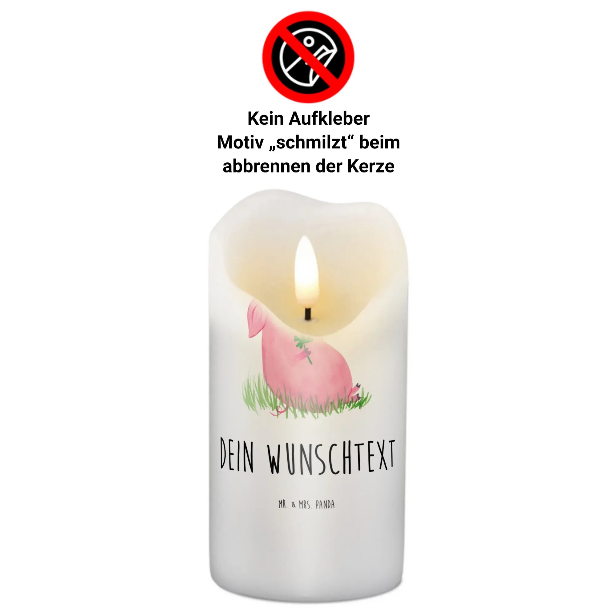 Du bist auf der Suche nach einem ganz besonderen Geschenk? Dann ist unsere personalisierte Kerze mit dem niedlichen Glücksschwein genau das Richtige für dich! Diese edle und wunderschöne Kerze von Mr. & Mrs. Panda ist nicht nur ein Blickfang, sondern auch ein wahres Glücksbringer-Motiv. Das kleine Schweinchen mit dem Kleeblatt in der Hand symbolisiert Glück, Zufriedenheit und positive Energie.