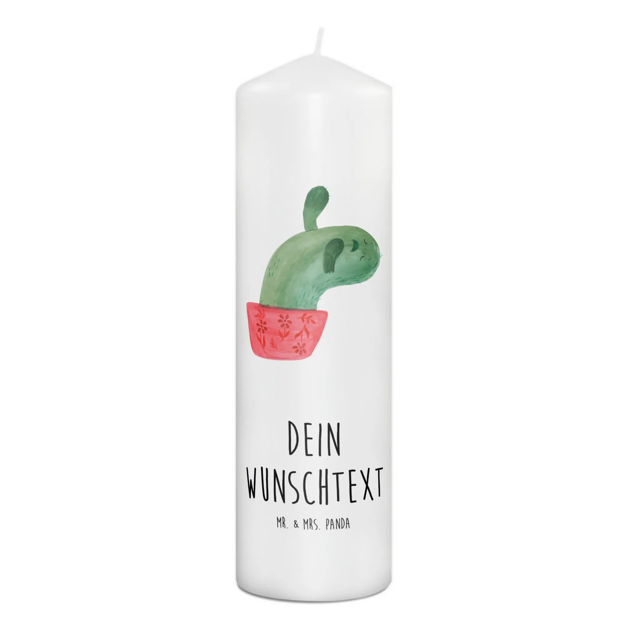 Der fröhliche Kaktus, den Mrs. Panda mit viel Liebe in Aquarelltechnik gestaltet hat, bringt garantiert ein Lächeln in jedes Gesicht. Du kannst die Kerze mit deinem Wunschnamen oder einem persönlichen Spruch individualisieren und so zu einem einzigartigen Geschenk machen, das von Herzen kommt. Ein wahres Must-Have für alle, die diese kleinen, unzerstörbaren Freunde der Wüste lieben.