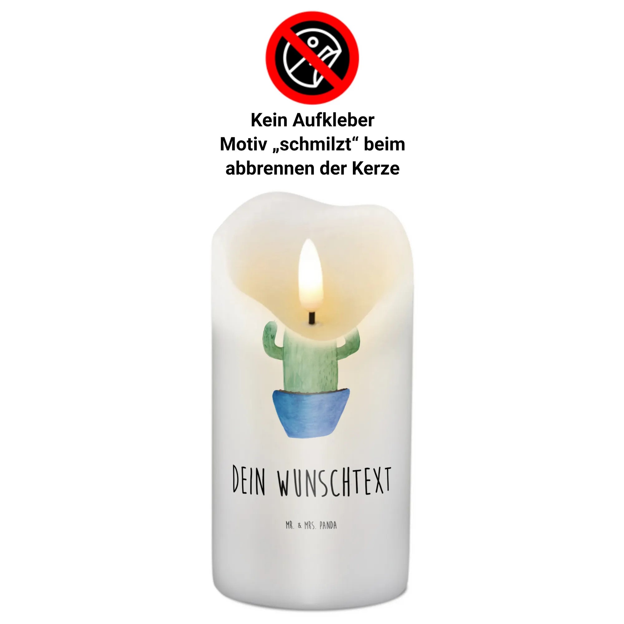 Das fröhliche Kaktus-Motiv mit einem Sonnenhut erinnert an Sommer, Sonne und Lebensfreude. Wenn du nach einer einzigartigen Geschenkidee suchst, die gleichsam eine positive Stimmung verbreitet, dann ist diese personalisierte Kerze wie gemacht für dich!