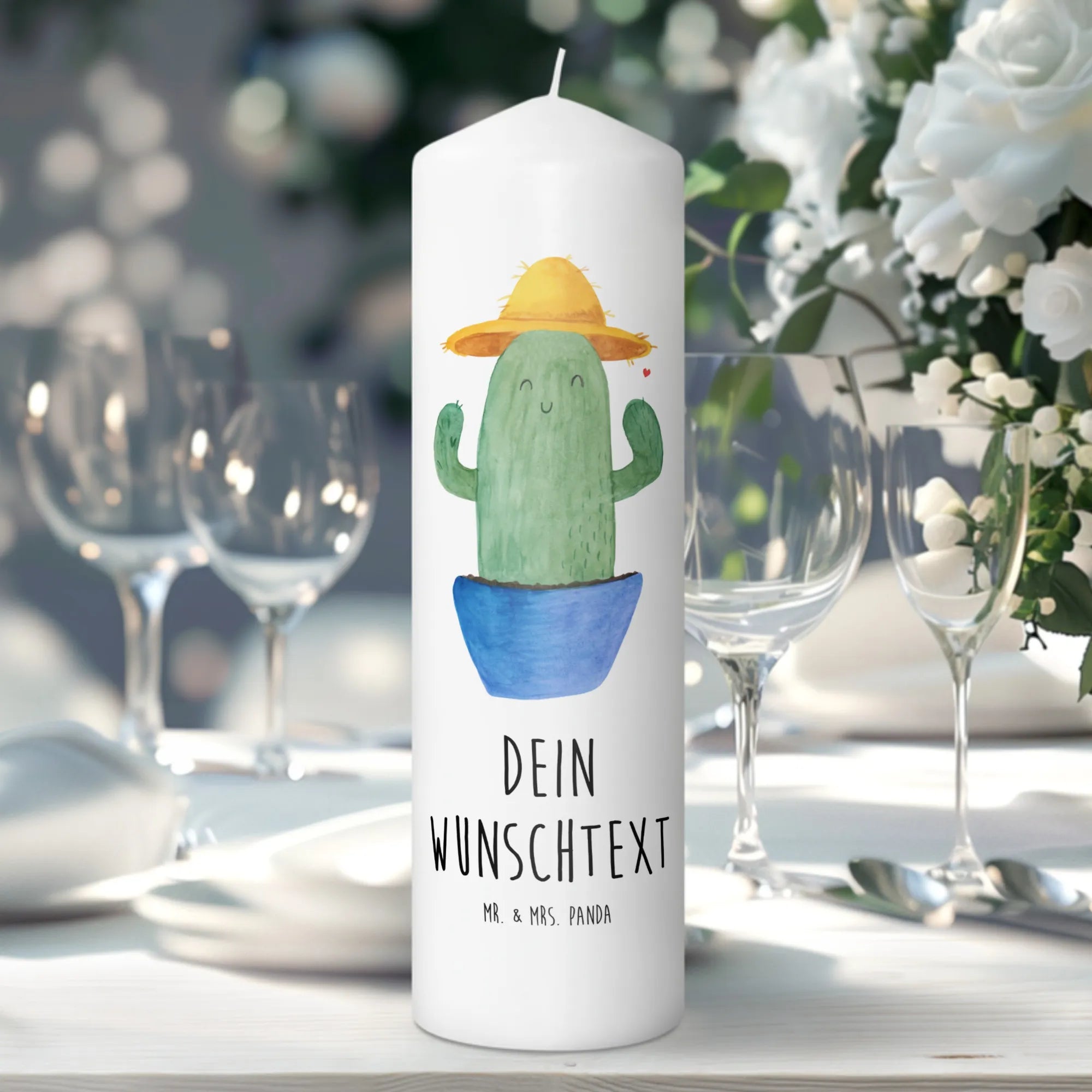 Die personalisierte Kerze Kaktus Sonnenhut von Mr. & Mrs. Panda ist das perfekte Geschenk für alle, die das Besondere schätzen. Mit ihrem fröhlichen Kaktus-Motiv, das von Mrs. Panda mit viel Liebe im Aquarellstil gezeichnet wurde, bringt sie Farbe und Freude in jedes Zuhause.