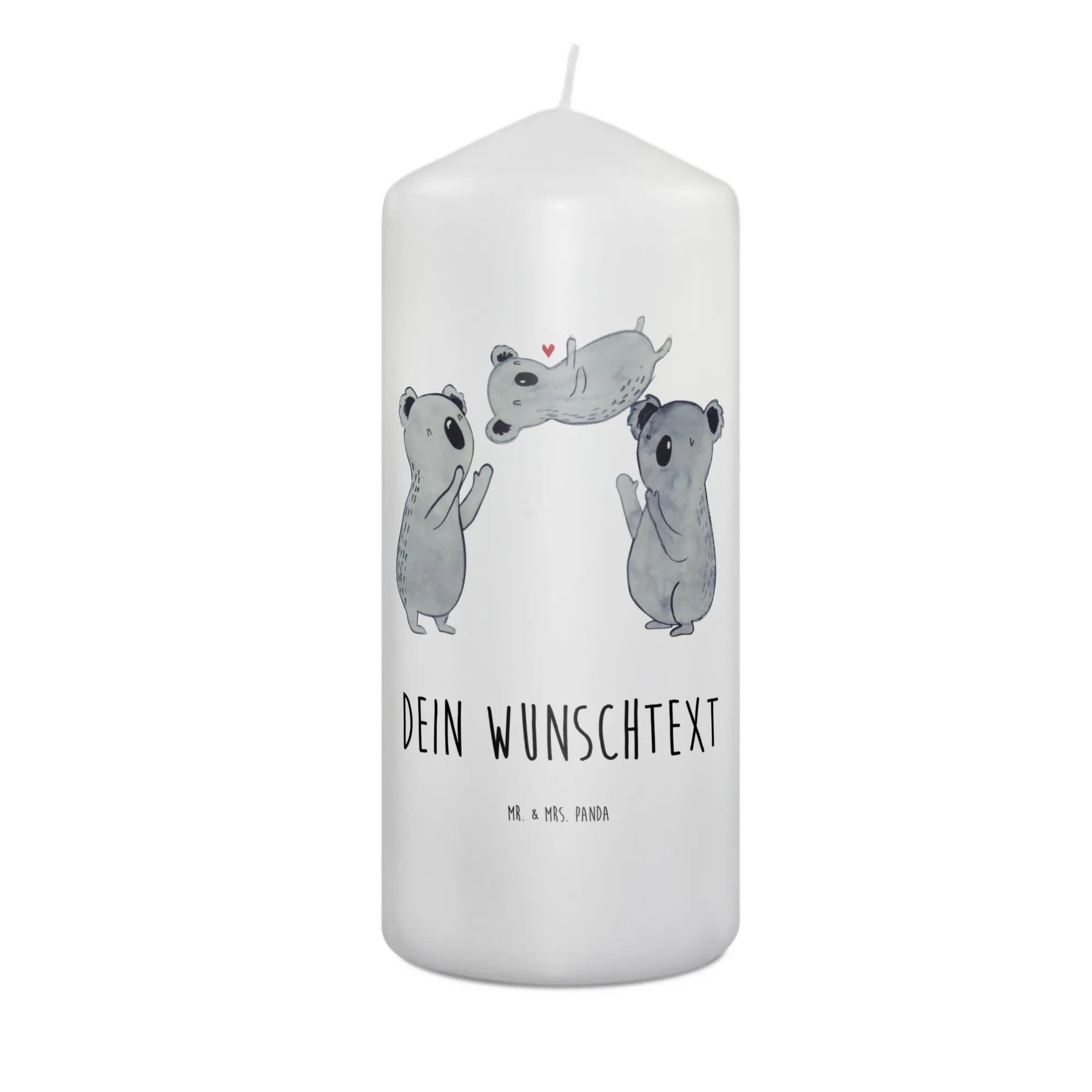 Unsere personalisierte Kerze mit dem zauberhaften Motiv 'Koala Feiern Sich' aus der Geburtstagskollektion von Mr. & Mrs. Panda ist das perfekte Geschenk für jeden Anlass!