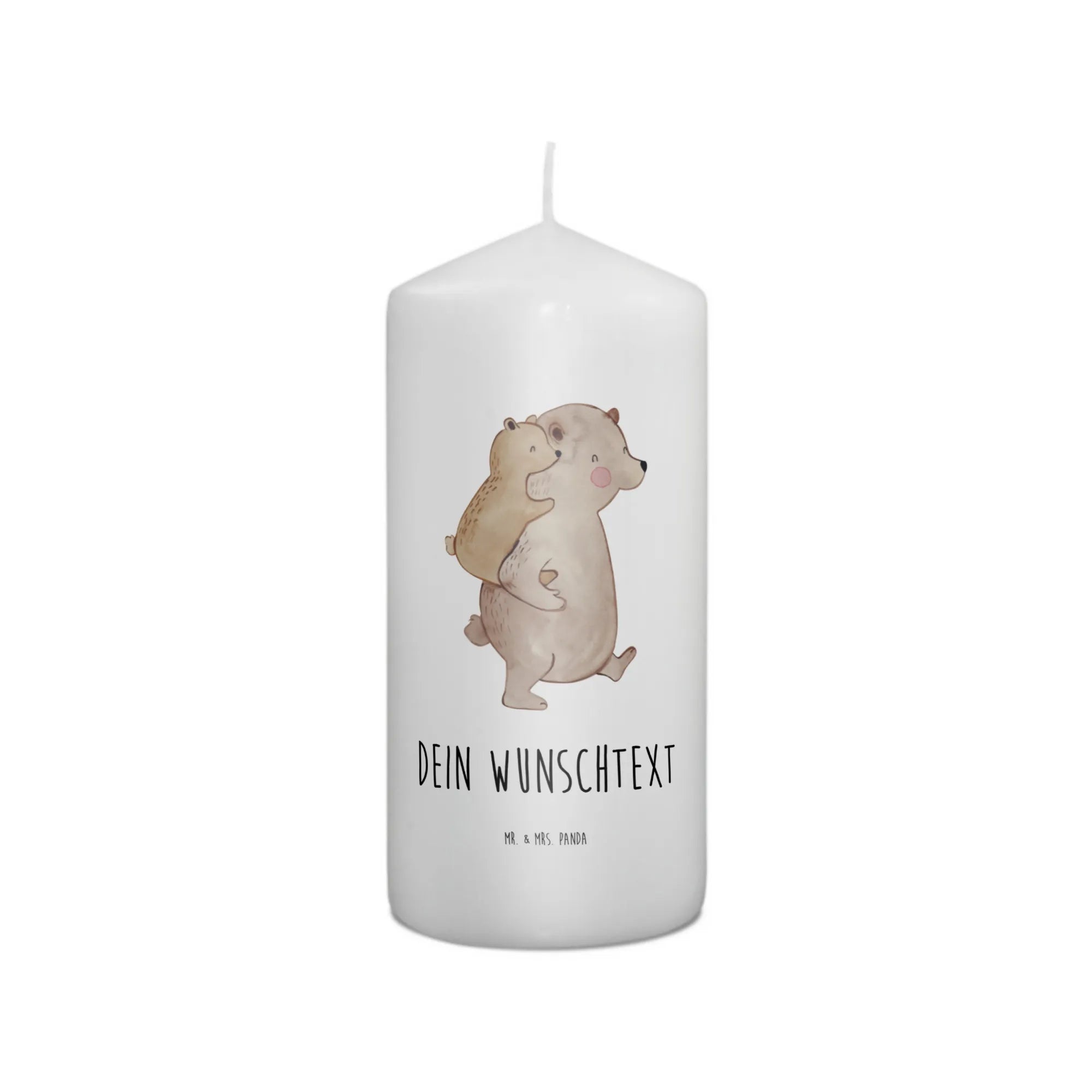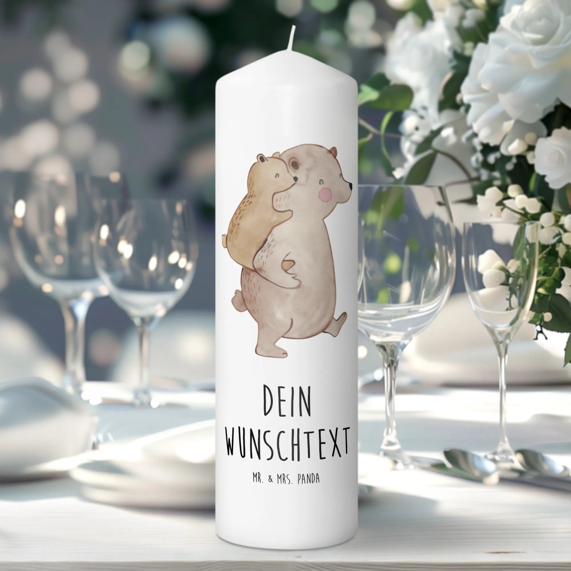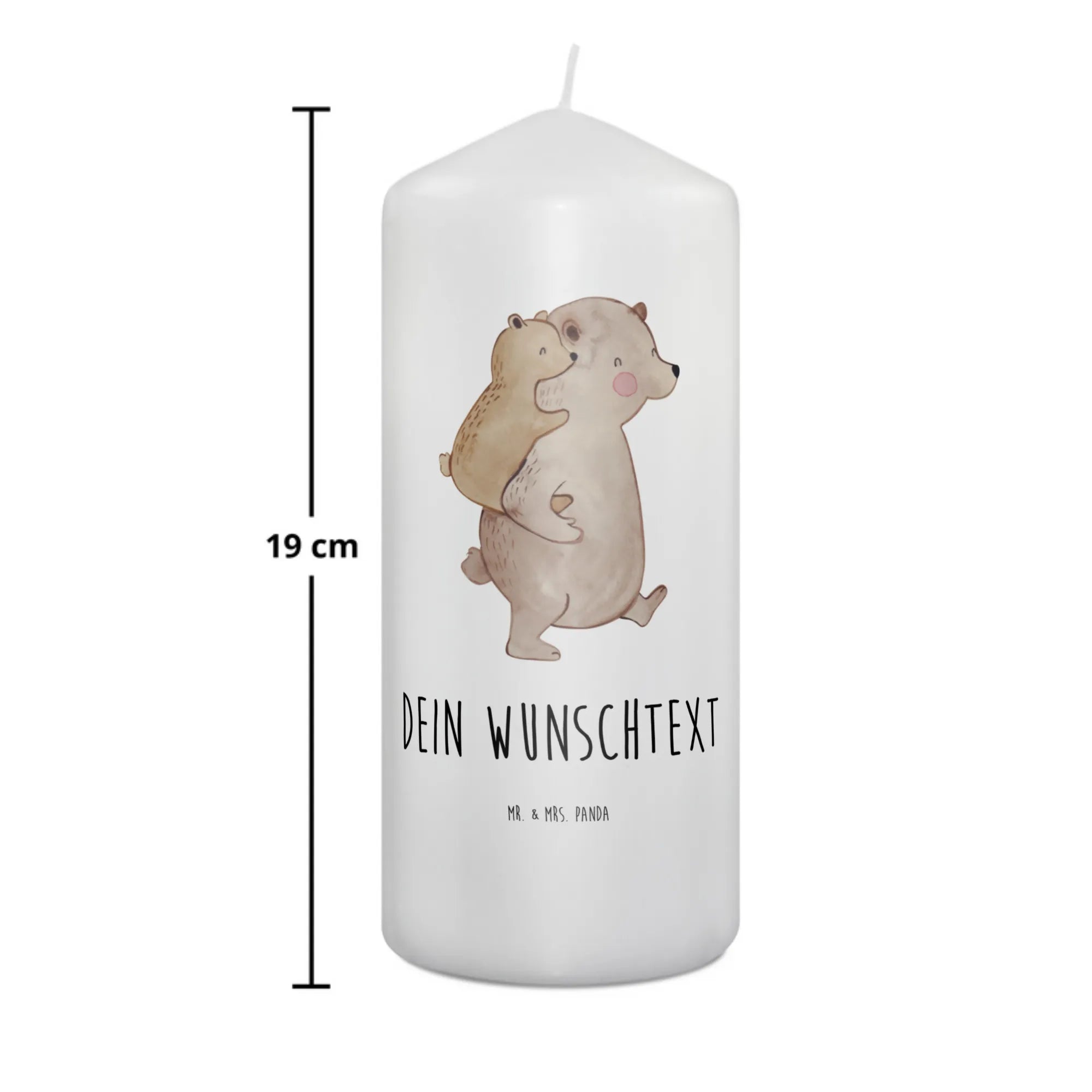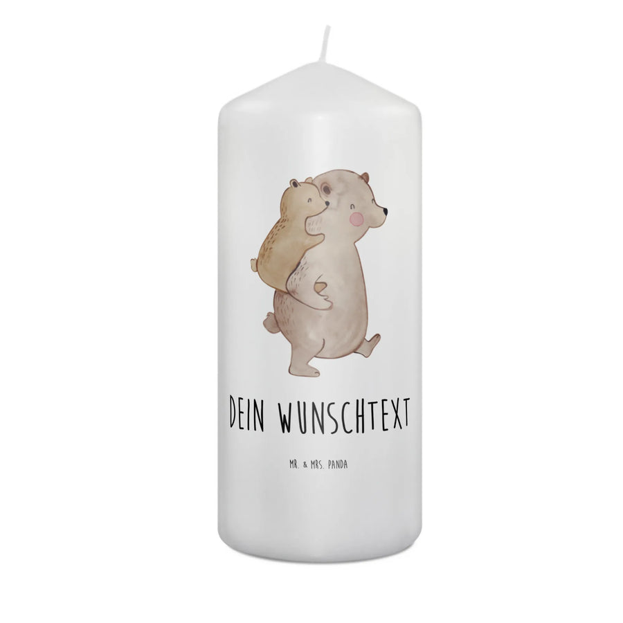 Die personalisierte Kerze Papa Bär von Mr. & Mrs. Panda ist das perfekte Geschenk für alle, die ihrem Vater, Vati, Papi oder Onkel etwas ganz Besonderes schenken möchten. Diese wunderschöne Kerze kommt aus unserer Familien-Kollektion und ist mit viel Liebe und Wärme gestaltet. Das Motiv des großen Bären, der einen kleinen Bären auf dem Rücken trägt, vermittelt die innige Bindung zwischen Vater und Kind. Es gibt Millionen Papas auf dieser Welt, aber nur zu einem blicke ich auf.... – dieser liebevolle Spruch macht die Kerze zu einem idealen Geschenk für den Vatertag, Geburtstage oder einfach, um Danke zu sagen.