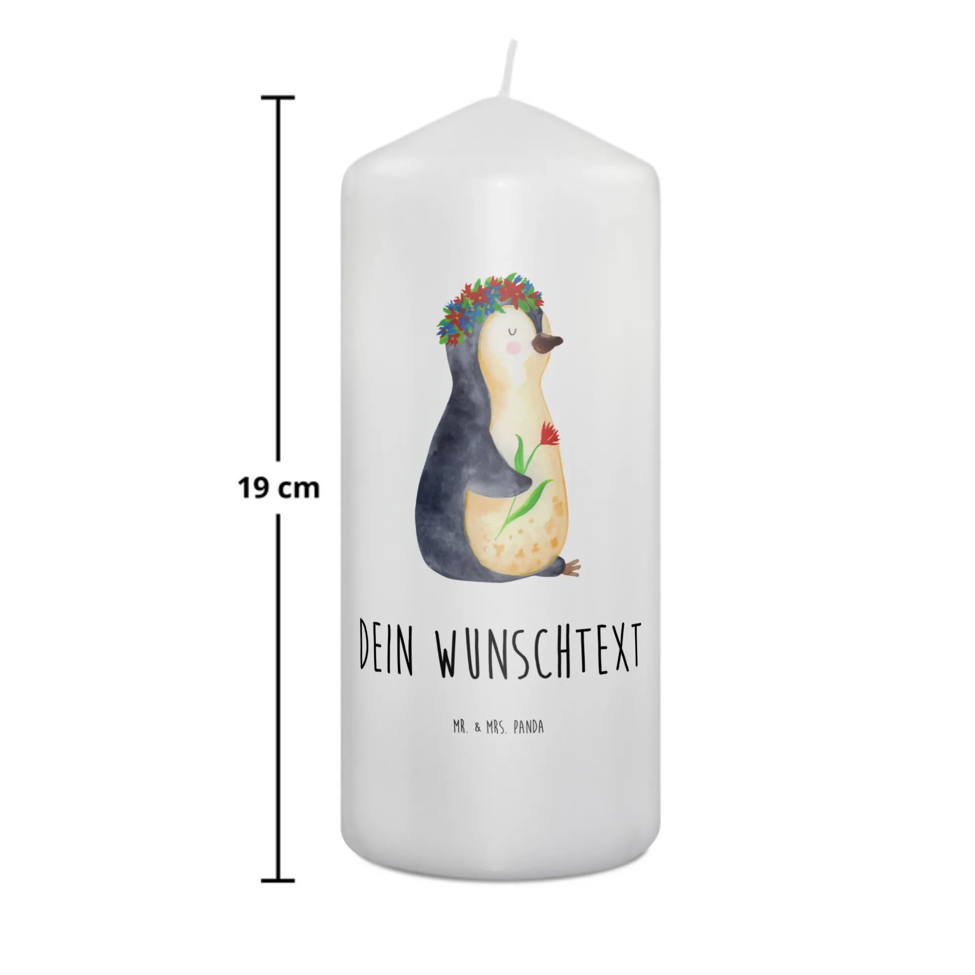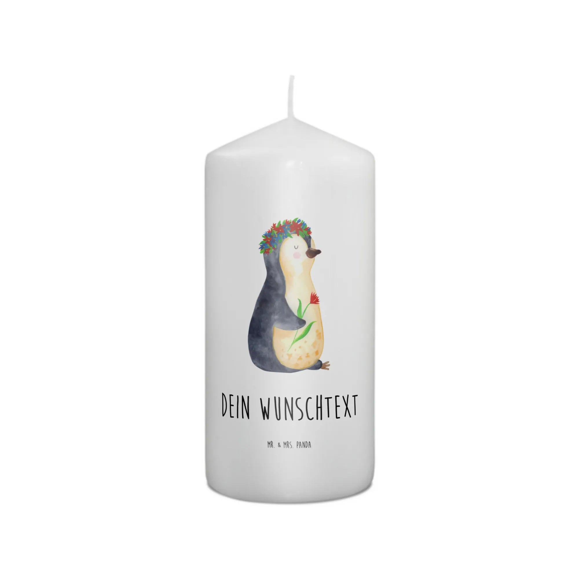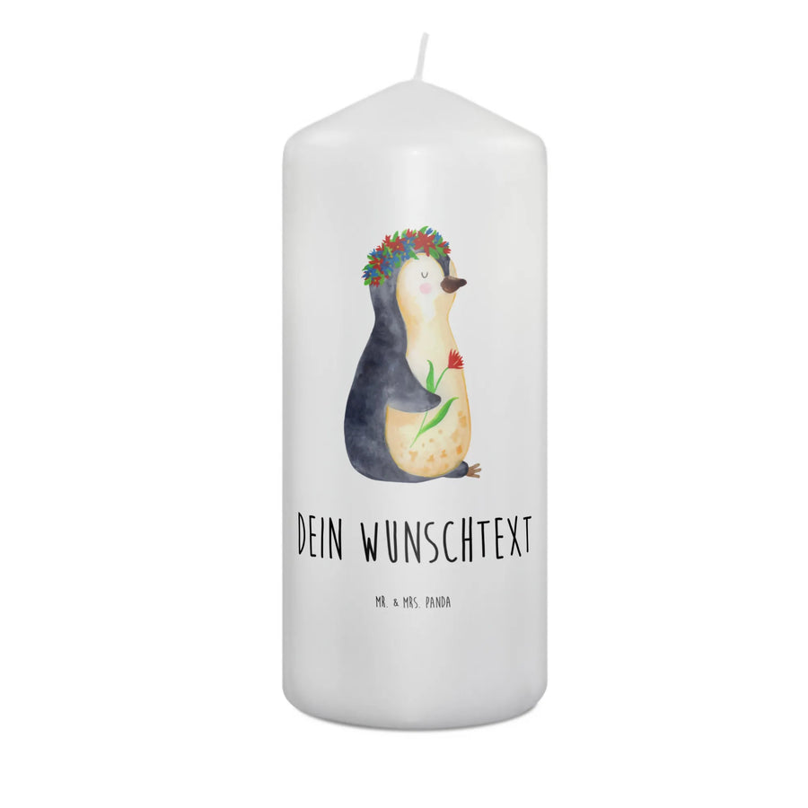 Die personalisierte Kerze mit dem süßen Pinguin Blumenkranz aus der Pinguin-Kollektion von Mr. & Mrs. Panda ist das perfekte Geschenk für zahlreiche Anlässe!