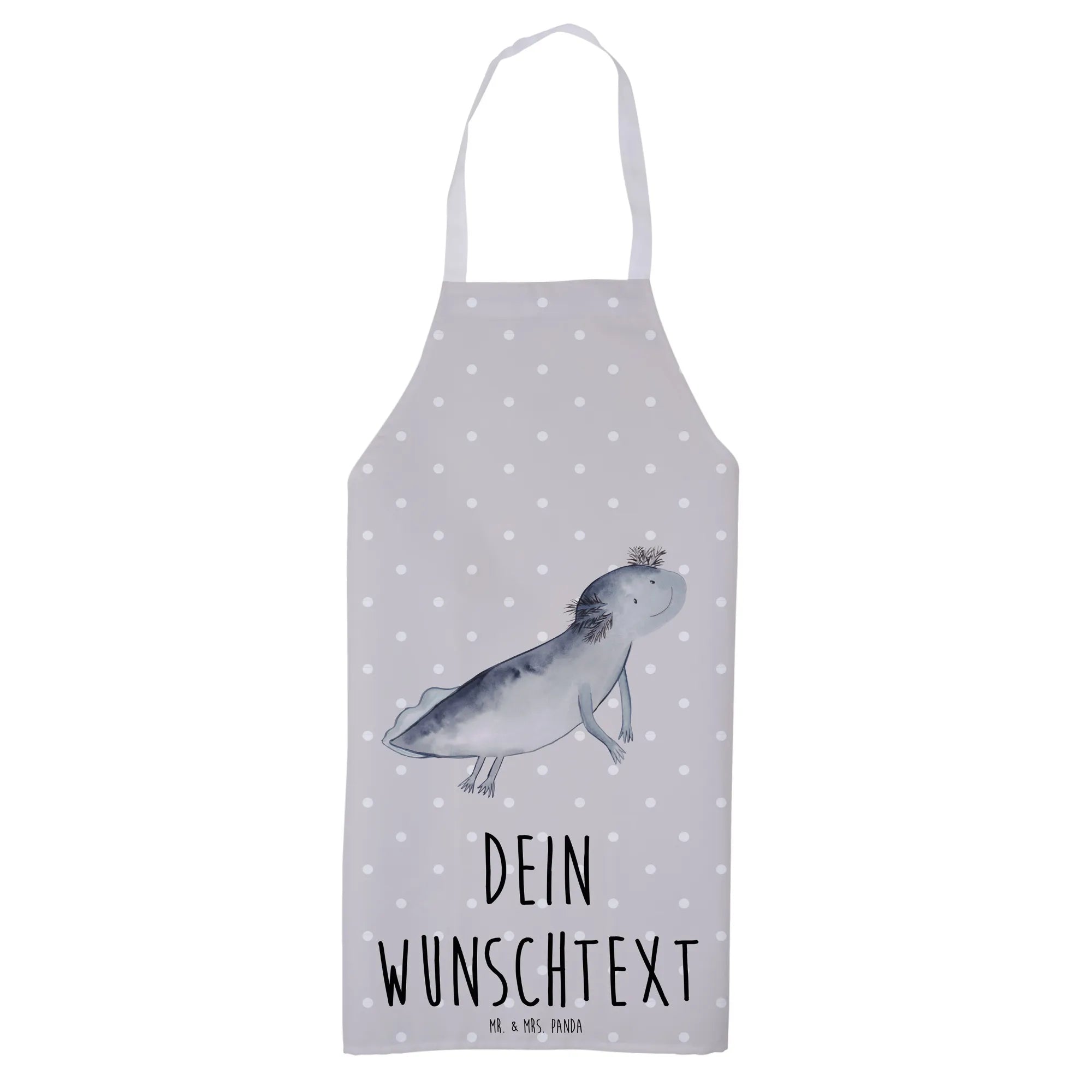 Die Schürze ist personalisierbar, sodass du sie mit deinem Wunschnamen oder Wunschtext versehen kannst und so ein individuell gestaltetes Geschenk kreierst. Das niedliche Axolotl, das vergnügt im Wasser schwimmt, verleiht der Schürze einen ganz besonderen Charme und sorgt dafür, dass du beim Kochen immer gute Laune versprühst.