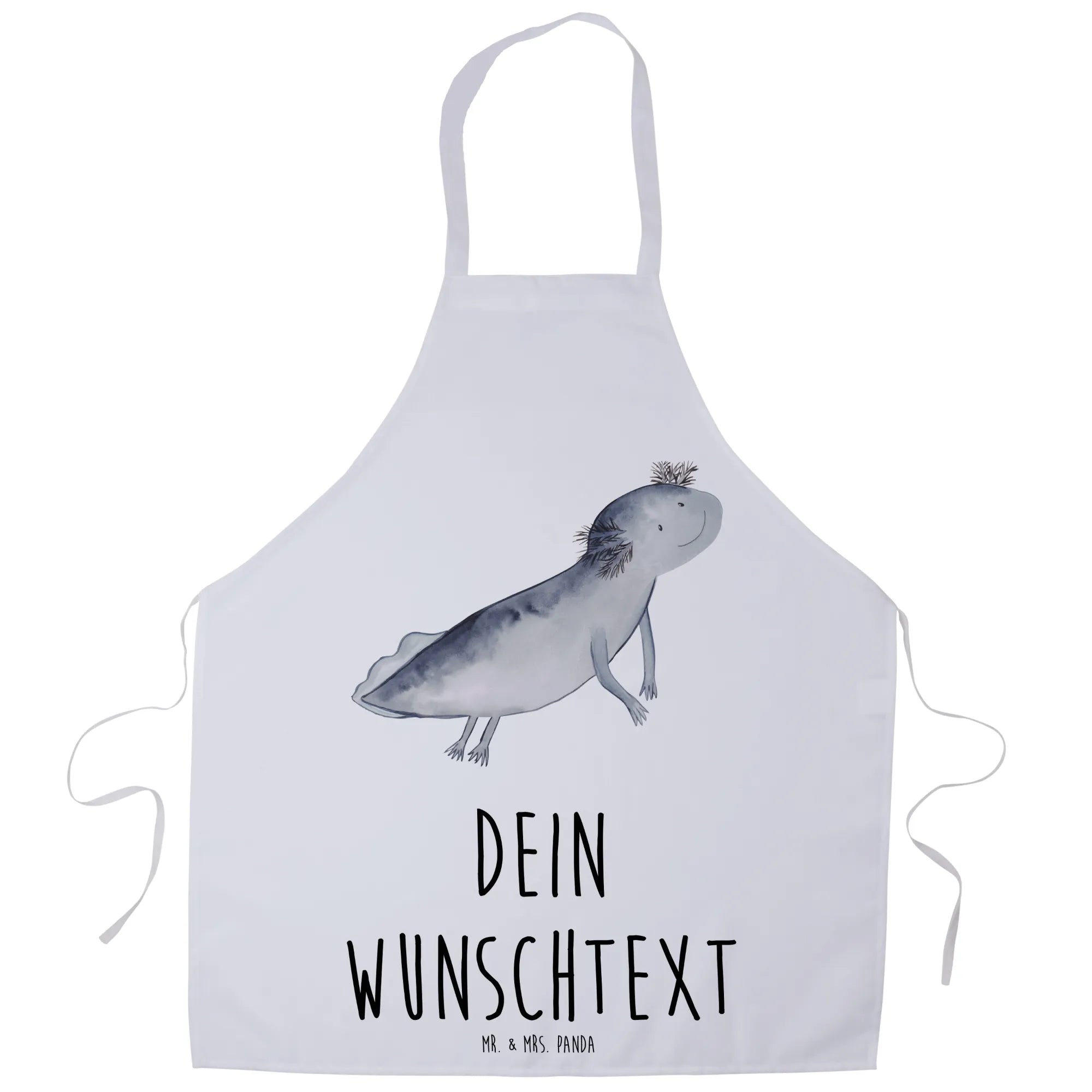 Personalisierte Kochschürze Axolotl schwimmt - Weiß