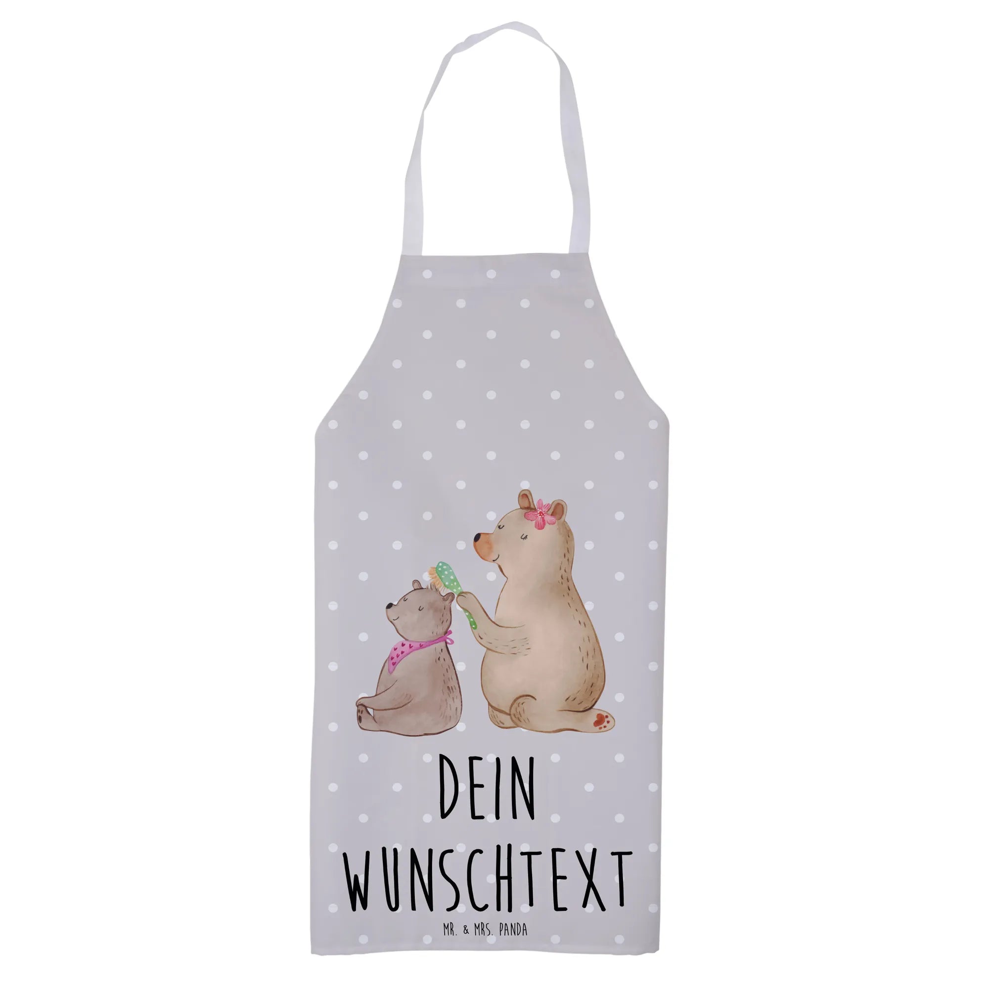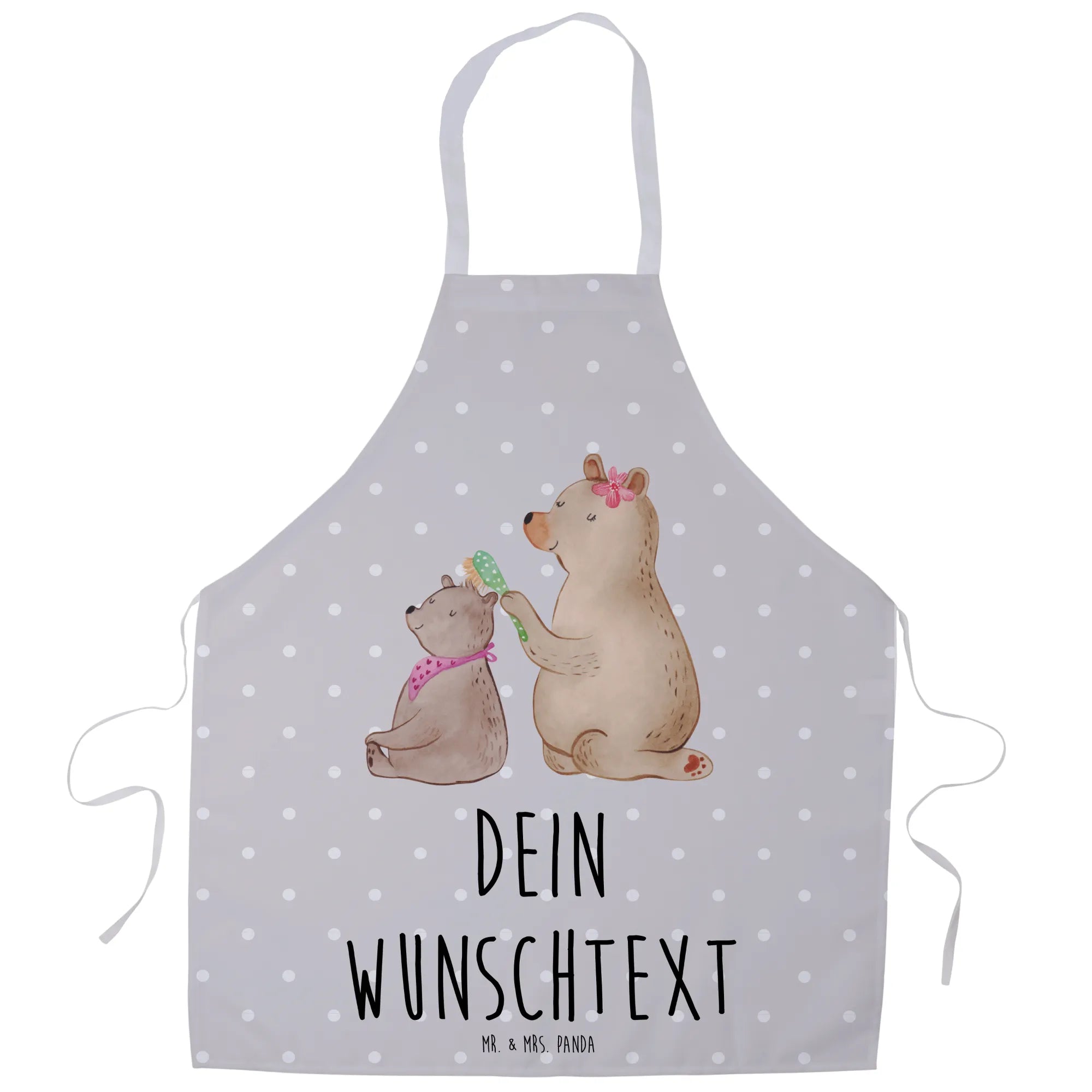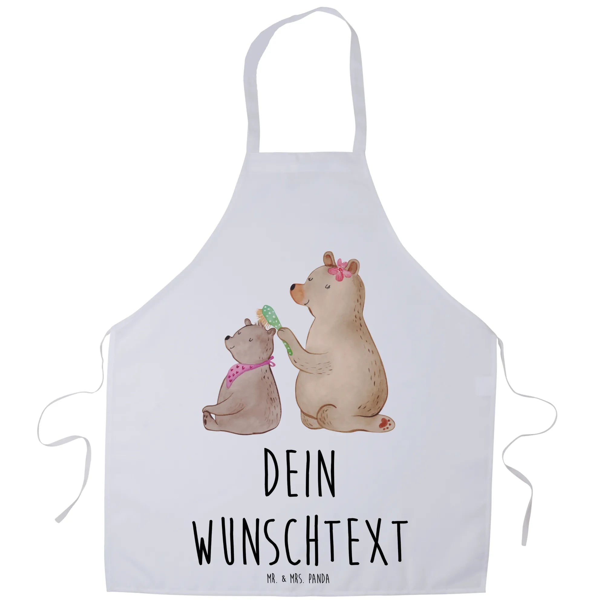 Mit dem Motiv eines großen Bären, der zärtlich einen kleinen Bären mit einer Bürste frisiert, spiegelt sie die Wärme und Fürsorge wider, die wir unseren Müttern entgegenbringen. Das süße Design sorgt für ein Lächeln und die Möglichkeit, die Schürze mit einem persönlichen Namen oder Text zu versehen, macht sie zu einem einzigartigen Geschenk.
