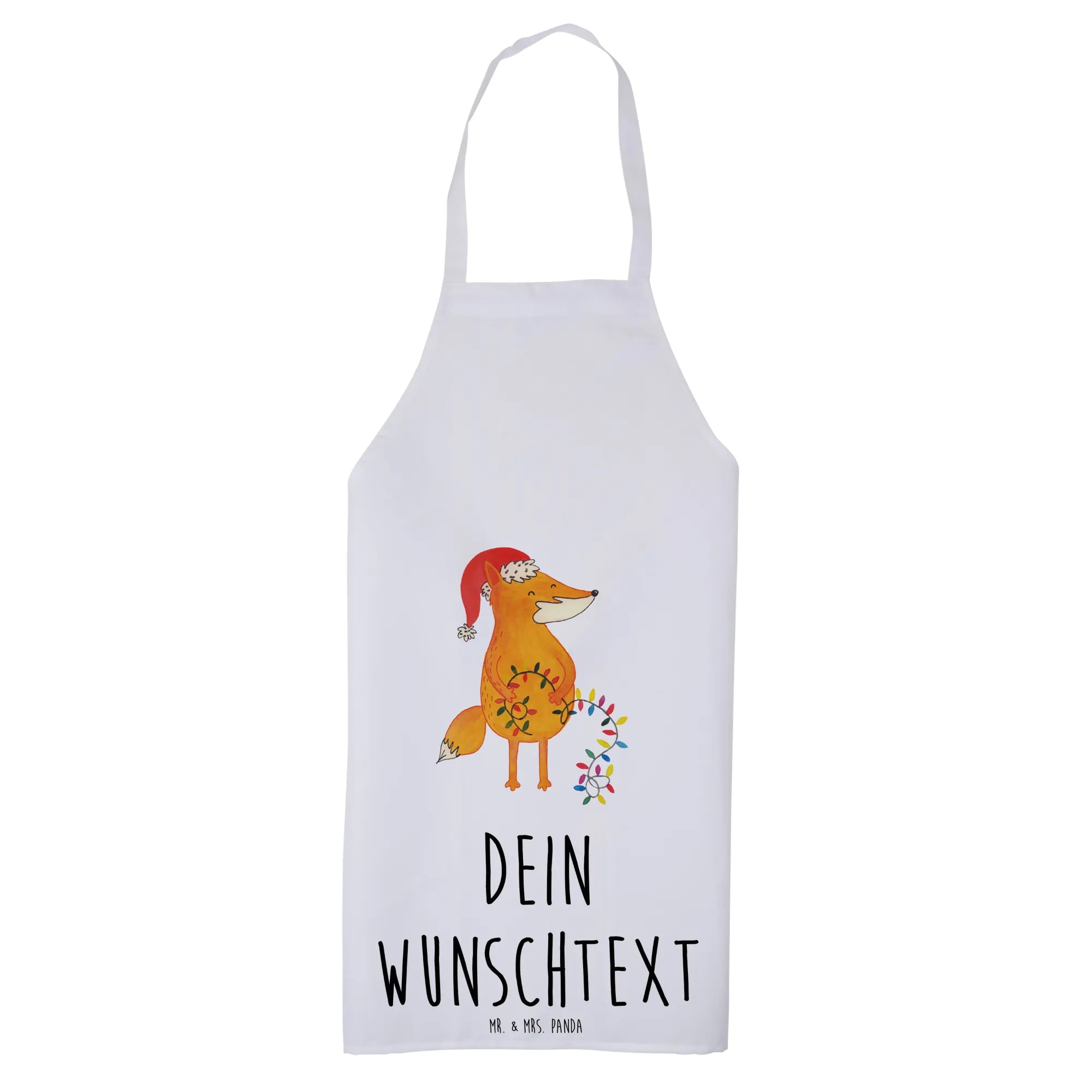 Entdecke die bezaubernde personalisierte Kochschürze mit dem niedlichen Fuchs-Motiv aus unserer Winter Kollektion von Mr. & Mrs. Panda! Diese tolle Schürze ist nicht nur praktisch, sondern auch ein stilvolles Accessoire für die Weihnachtszeit. Egal, ob du gerne kochst, backst oder grillst, mit dieser Schürze bringst du Farbe und Freude in deine Küche. Der fröhliche Fuchs, der eine weihnachtliche Kappe trägt und verspielt mit einer bunten Lichterkette spielt, zaubert garantiert ein Lächeln auf dein Gesicht.