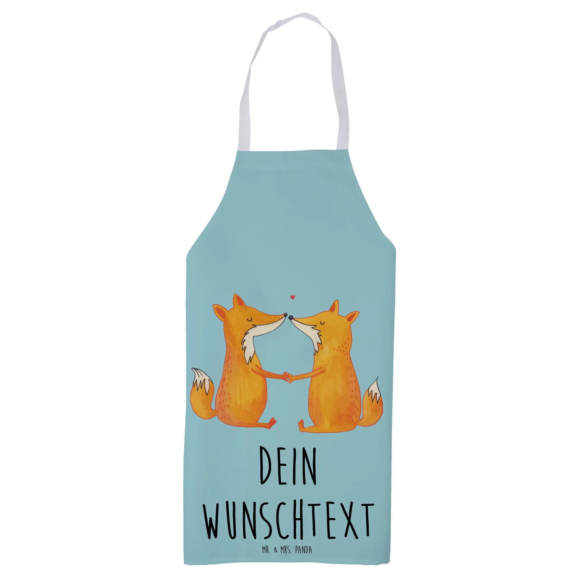Personalisierte Kochschürze Füchse Liebe - Türkis Pastell
