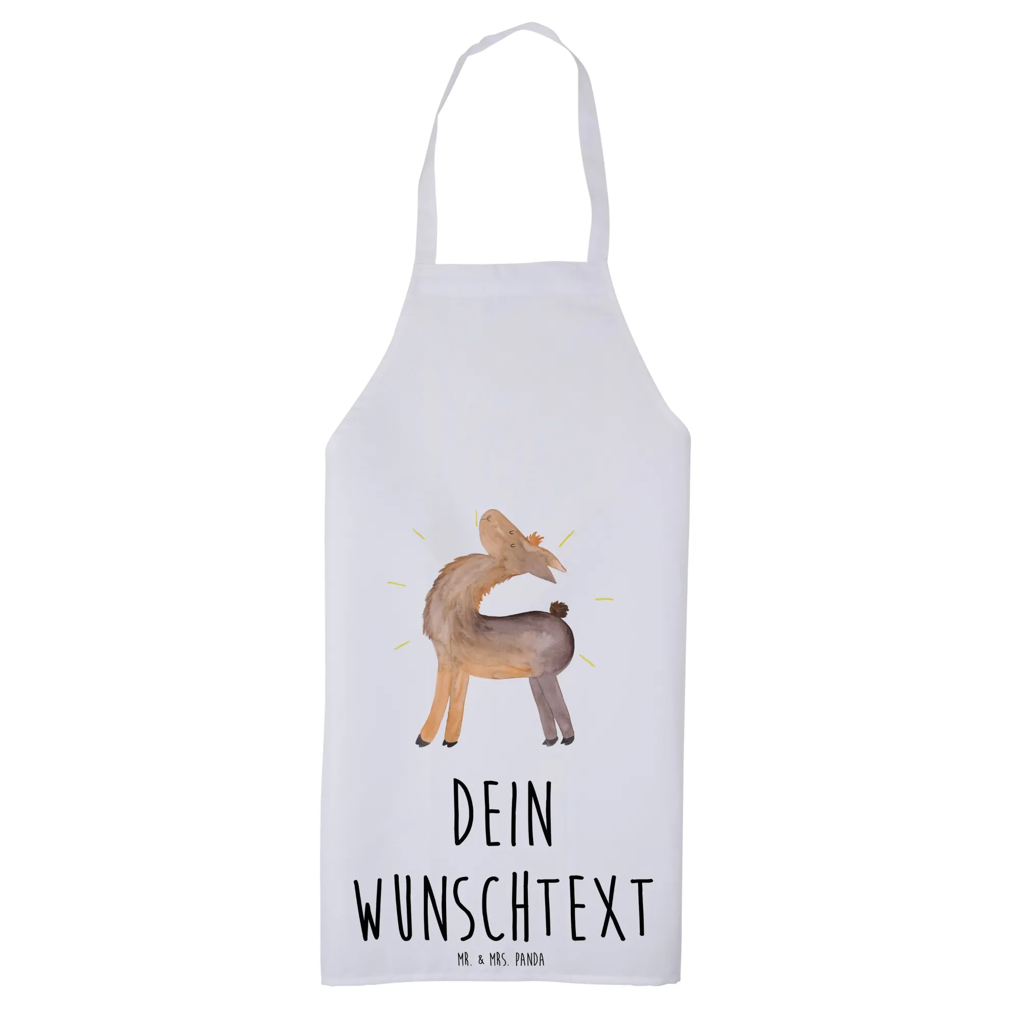 Die personalisierte Kochschürze "Lama stolz" aus der Lama-Kollektion von Mr. & Mrs. Panda ist das perfekte Geschenk für alle, die das Besondere lieben und gerne Zeit in der Küche verbringen. Egal, ob beim täglichen Kochen, Backen oder Grillen – mit dieser einzigartigen Schürze machst Du nicht nur beim Kochen eine gute Figur, sondern bleibst auch stylisch und geschützt vor Spritzern und Flecken. Die hochwertige Premium Kunstfaser sorgt dafür, dass die Schürze samtweich und atmungsaktiv ist, während die stabilen Nackenschlaufen und Seitenbänder für einen bequemen Sitz sorgen.