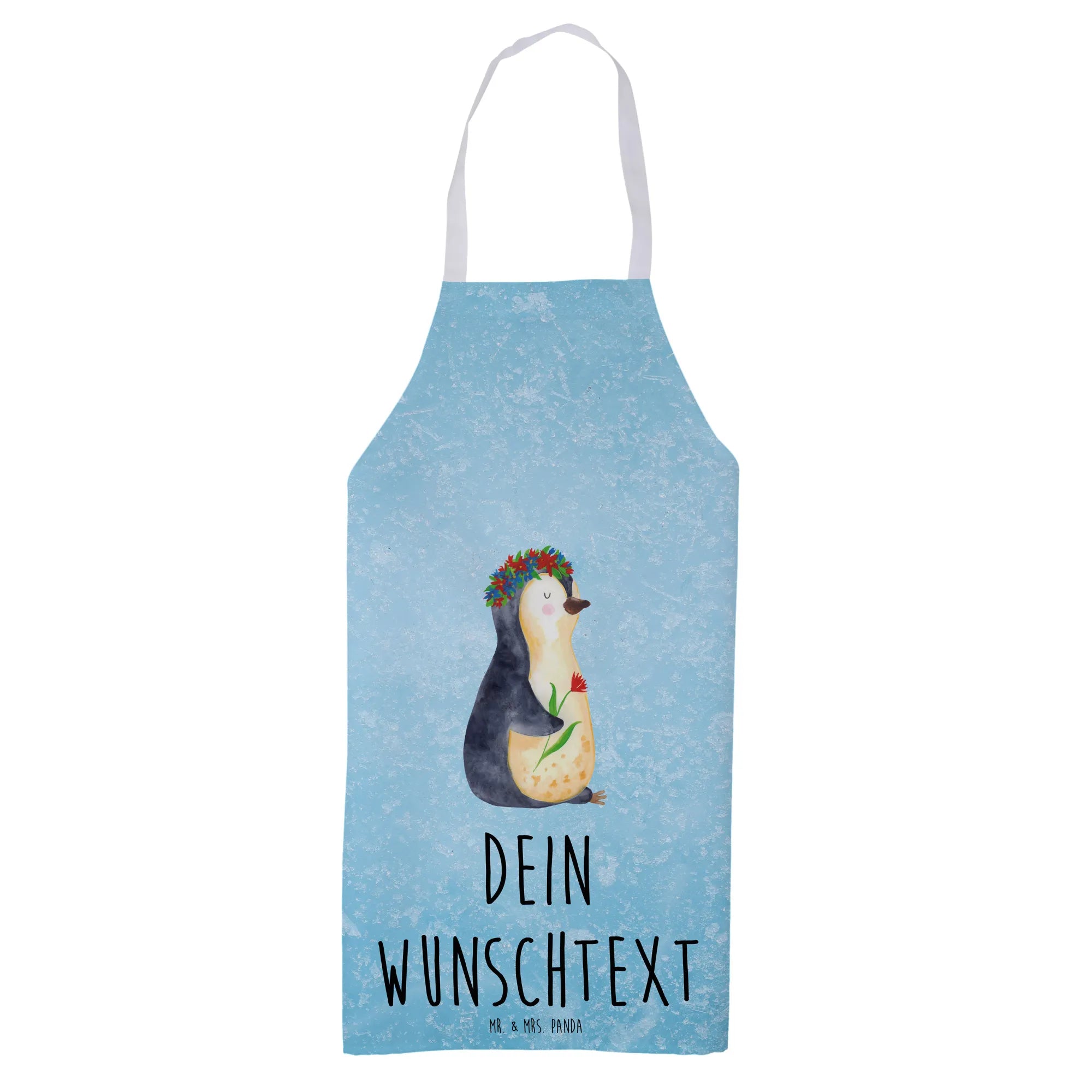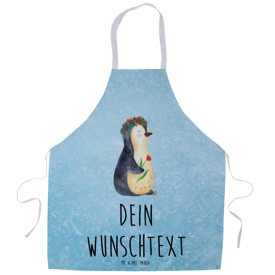 Personalisierte Kochschürze Pinguin Blumenkranz - Eisblau