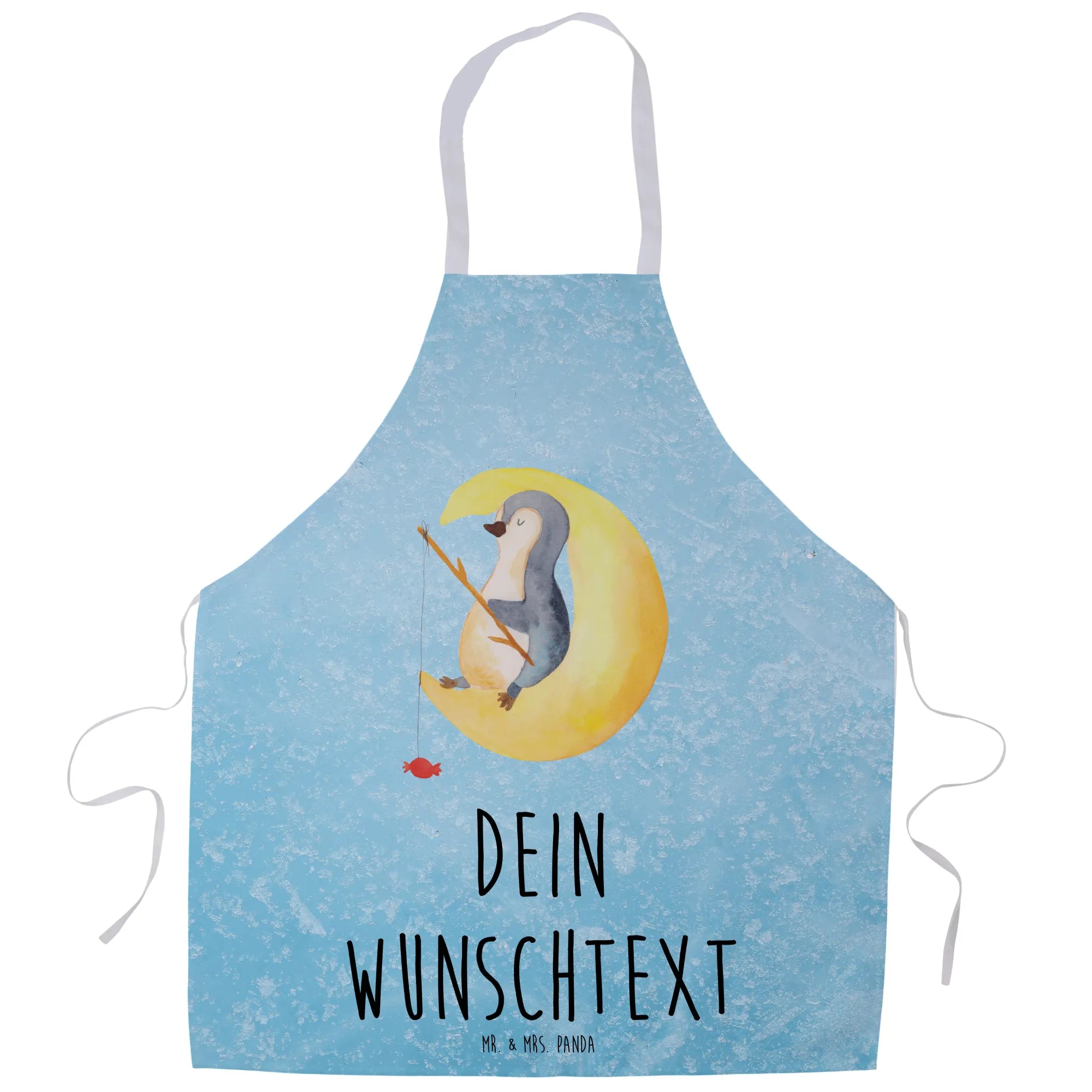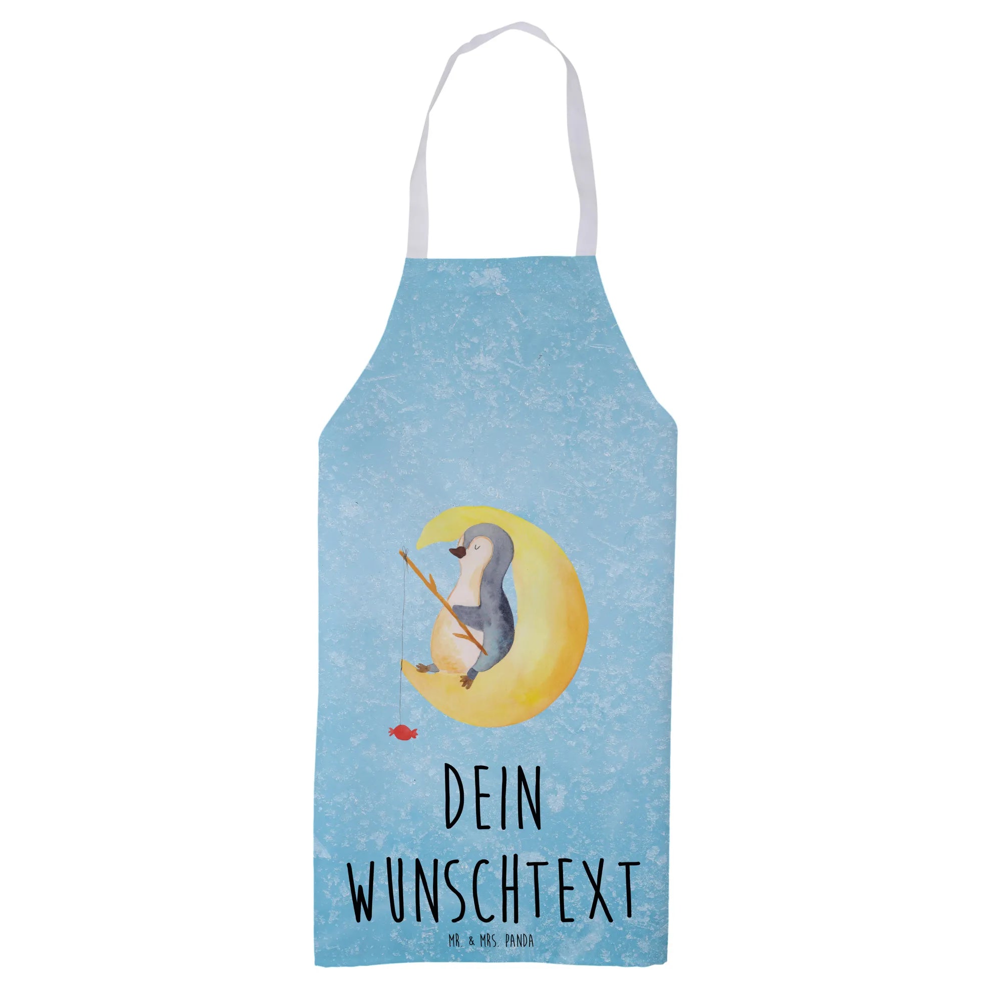 Personalisierte Kochschürze Pinguin Mond - Eisblau
