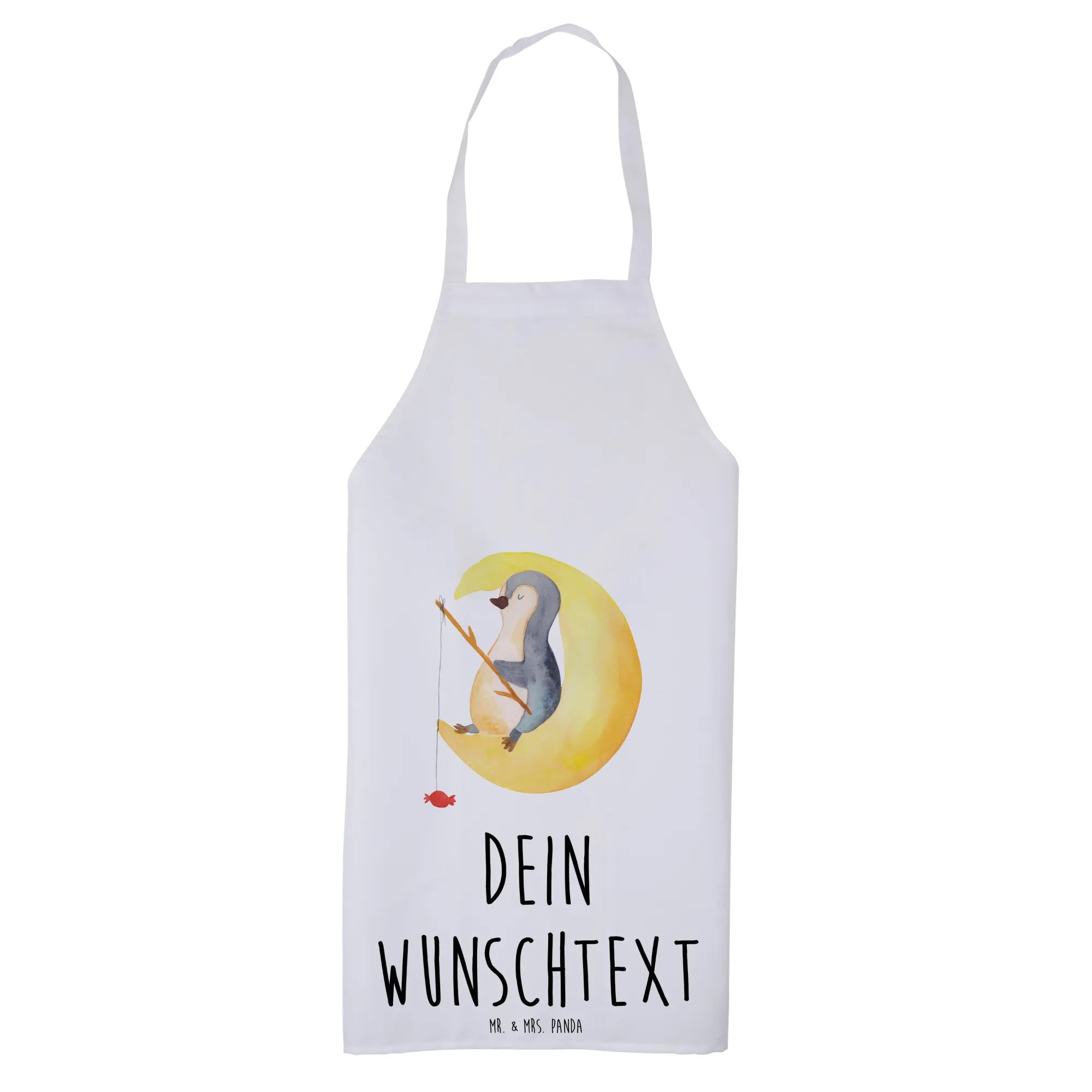 Entdecke die bezaubernde personalisierte Kochschürze aus der Pinguin-Kollektion von Mr. & Mrs. Panda. Mit dem süßen Motiv eines kleinen Pinguins, der es sich gemütlich auf einer Mondsichel gemacht hat und mit einer Angel nach Sternen angelt, bringst du nicht nur Freude in deine Küche, sondern auch einen Hauch von Humor.