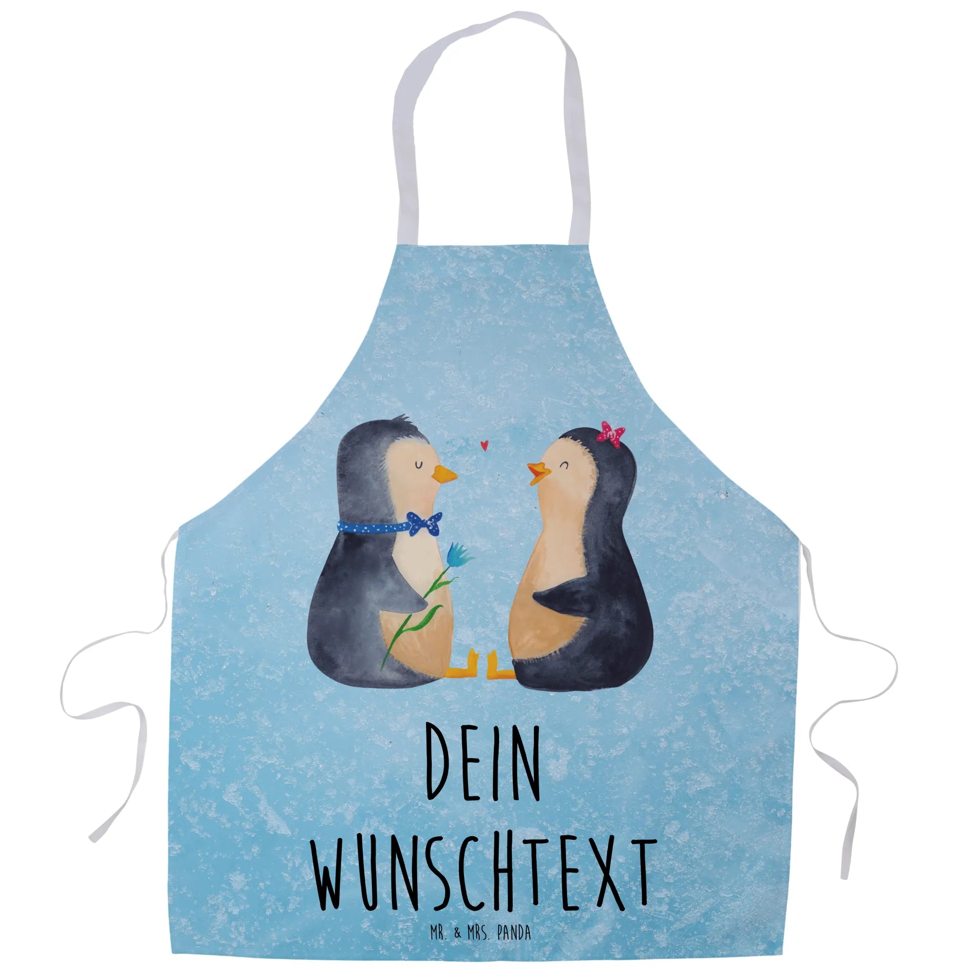Entdecke die zauberhafte personalisierte Kochschürze mit dem süßen Motiv des Pinguin Pärchens aus der einzigartigen Pinguin-Kollektion von Mr. & Mrs. Panda!