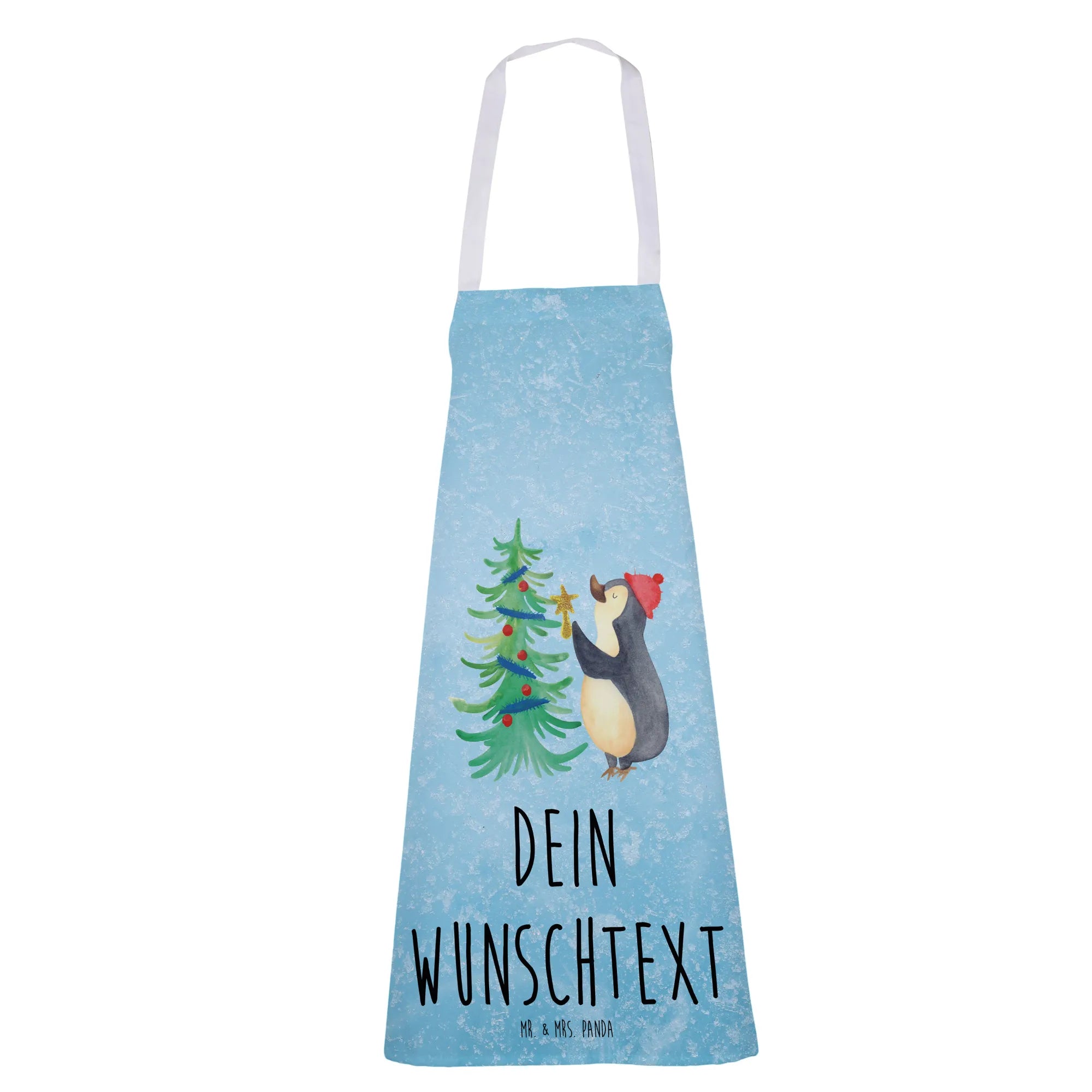 Personalisierte Kochschürze Pinguin Weihnachtsbaum - Eisblau