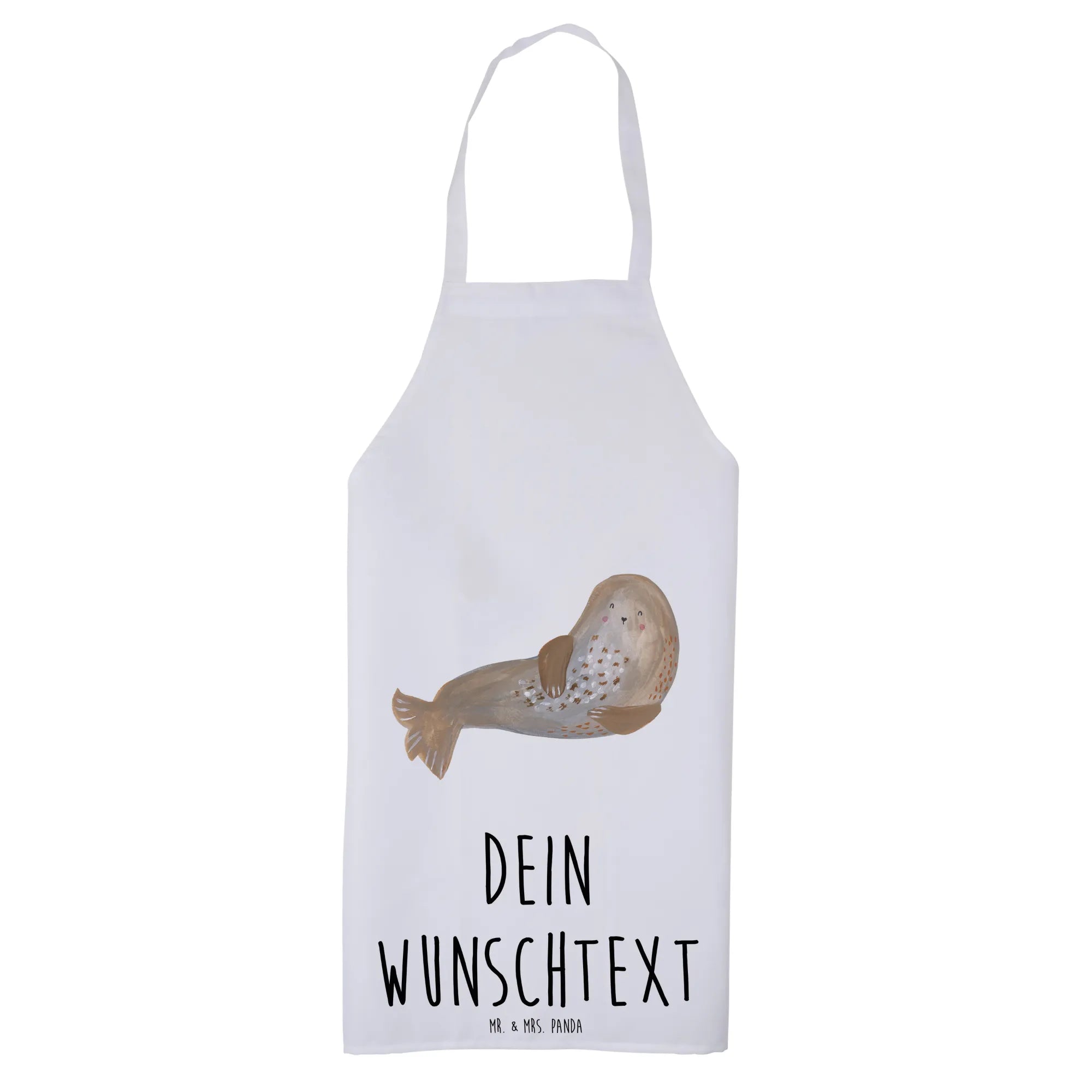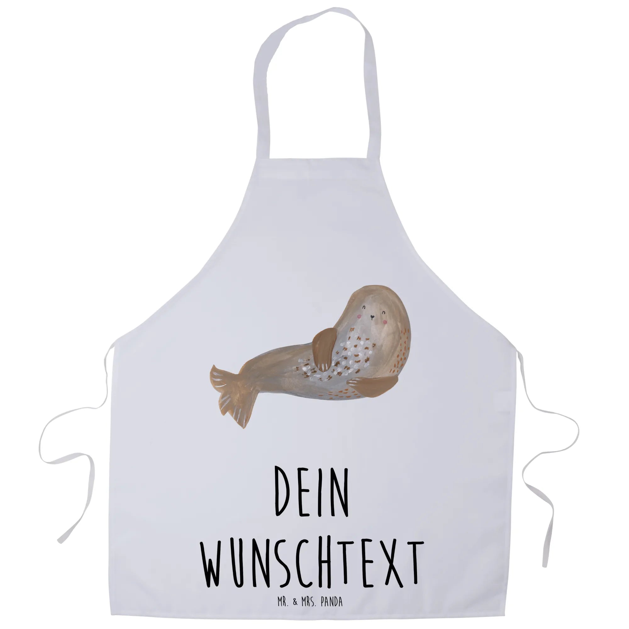 Personalisierte Kochschürze Robbe lachend - Weiß