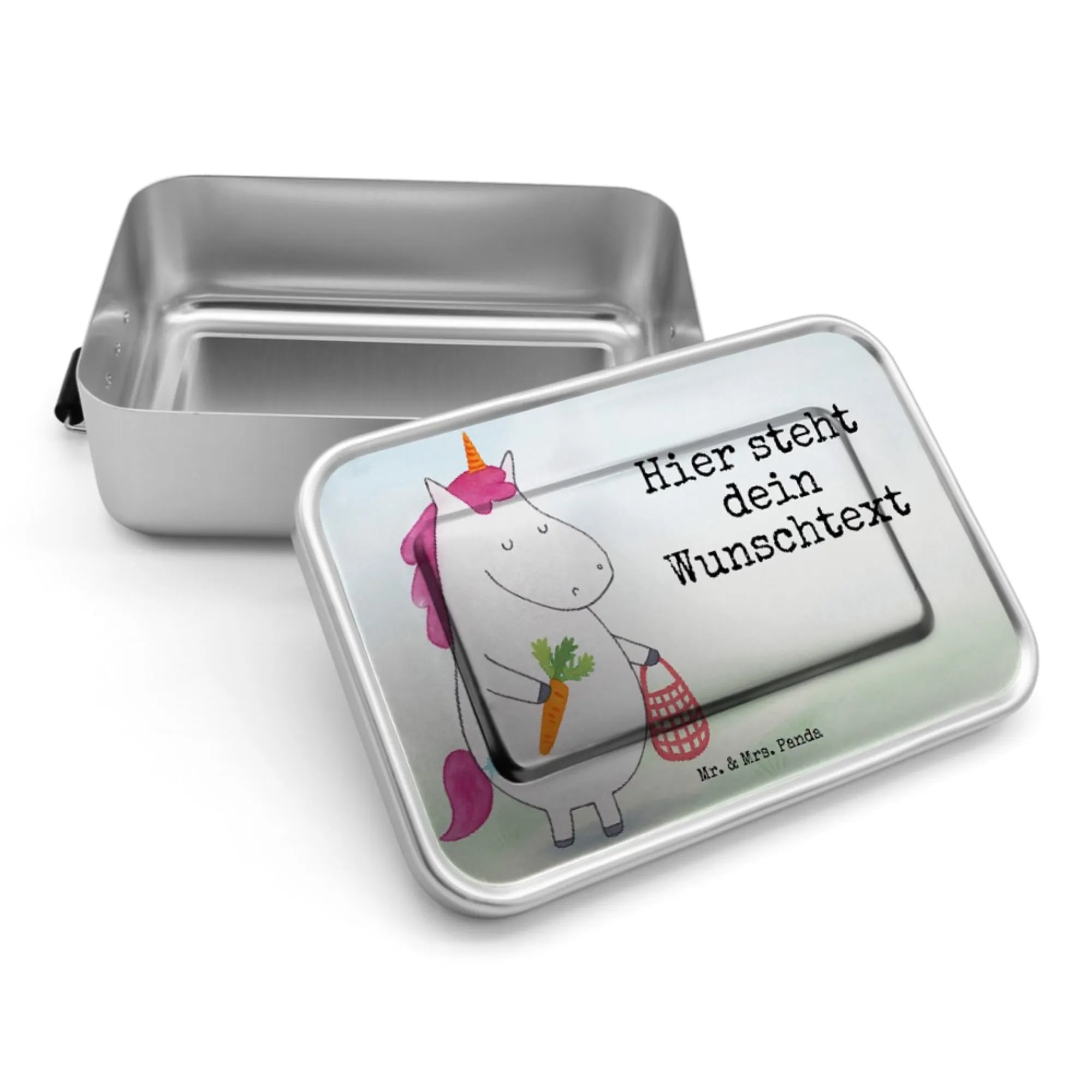 Personalisierte Metall Brotdose Einhorn Vegan Design
