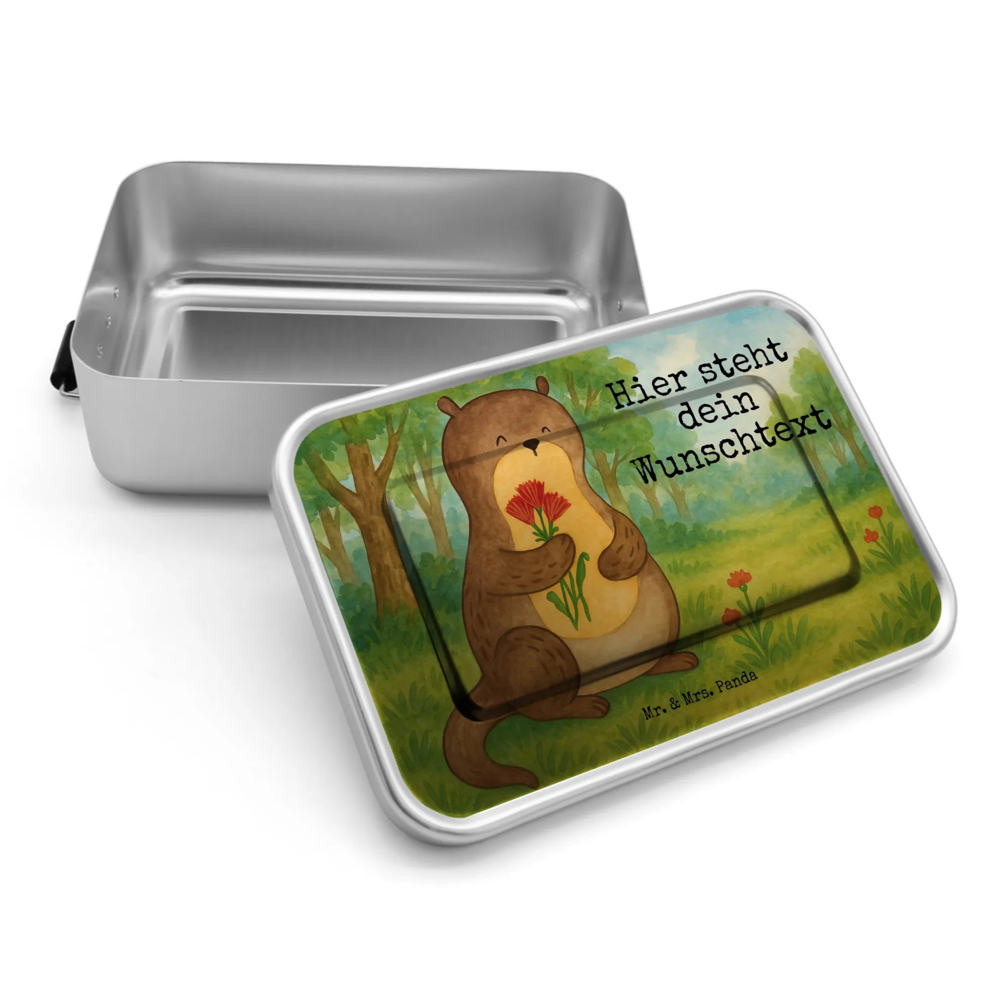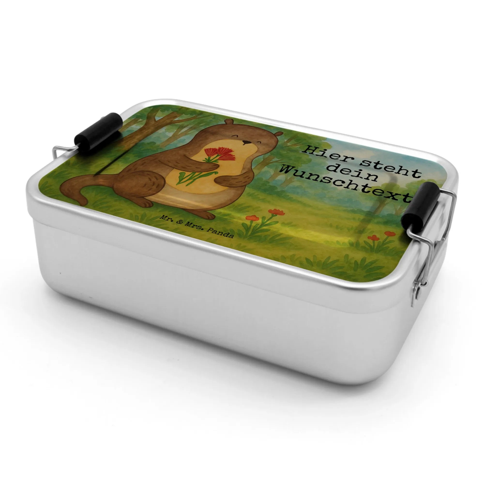 Personalisierte Metall Brotdose Otter Blumenstrauß Design – Mr. & Mrs. Panda