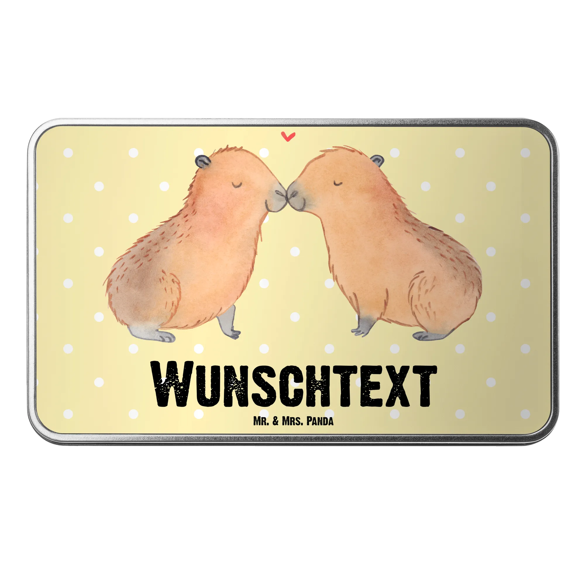 Die personalisierte Metalldose mit dem zauberhaften Motiv 'Capybara Liebe' von Mr. & Mrs. Panda ist das perfekte Geschenk für jeden Anlass. Stell dir vor, wie deine Liebsten beim Öffnen dieser Dose leuchtende Augen bekommen!