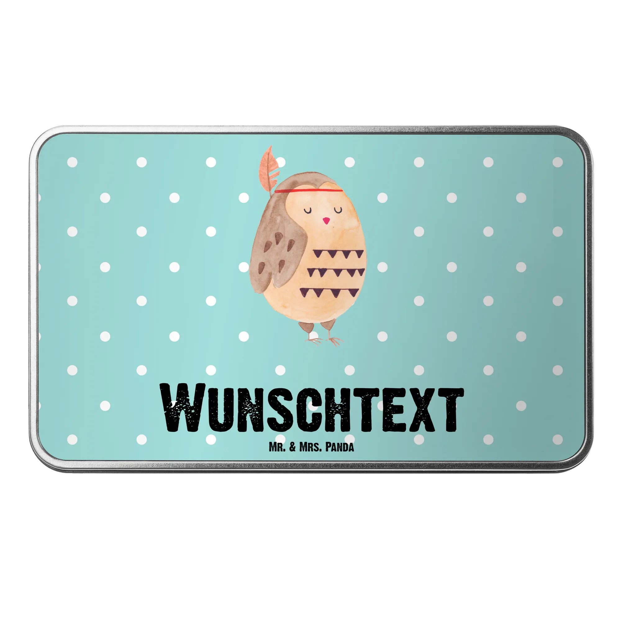 Die personalisierte Metalldose Eule Federschmuck ist ein Geschenk, das von Herzen kommt und eine tolle Möglichkeit bietet, jemandem zu zeigen, wie wichtig er dir ist.