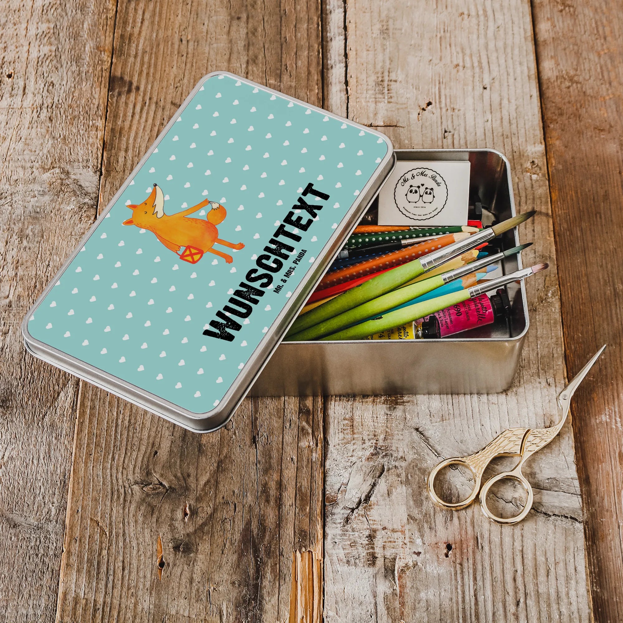 Die personalisierte Metalldose Fuchs Laterne von Mr. & Mrs. Panda ist der perfekte Begleiter für die gemütlichen Herbst- und Winterabende. Sie wird mit viel Liebe zum Detail gestaltet und bietet dir die Möglichkeit, deinen Wunschnamen oder Wunschtext hinzuzufügen. Damit hast du ein ganz besonderes Geschenk für deine Liebsten oder für dich selbst.