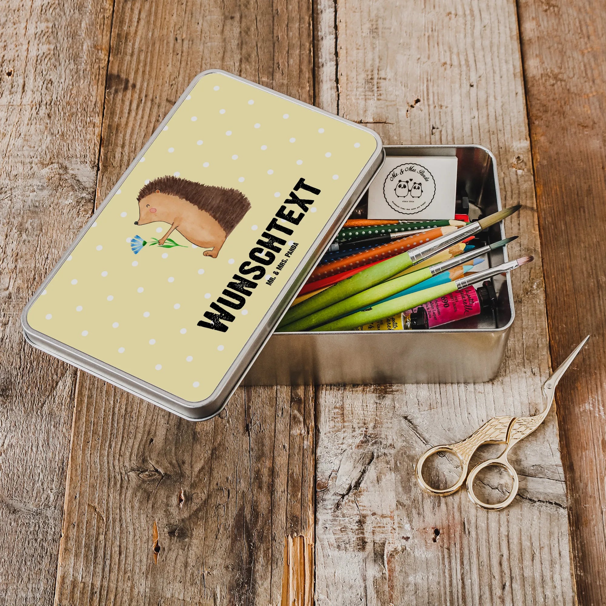 Personalisierte Metalldose Igel mit Blume