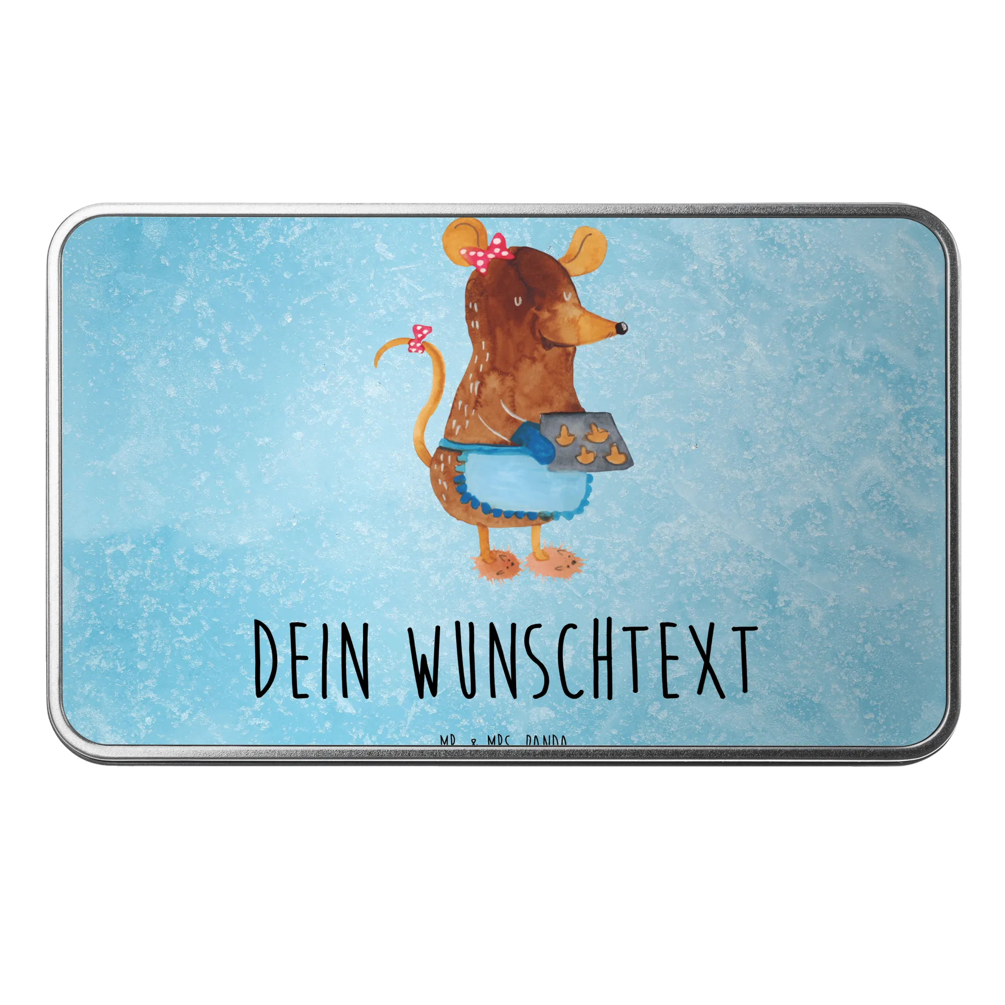 Die personalisierte Metalldose mit dem süßen Motiv der Maus, die Kekse backt, ist das ideale Geschenk für alle Backliebhaber und Fans der Winterzeit! Diese besondere Dose gehört zur Winter Kollektion von Mr. & Mrs. Panda und verbreitet schon beim Anblick Freude und Vorfreude auf die kommende Weihnachtszeit.