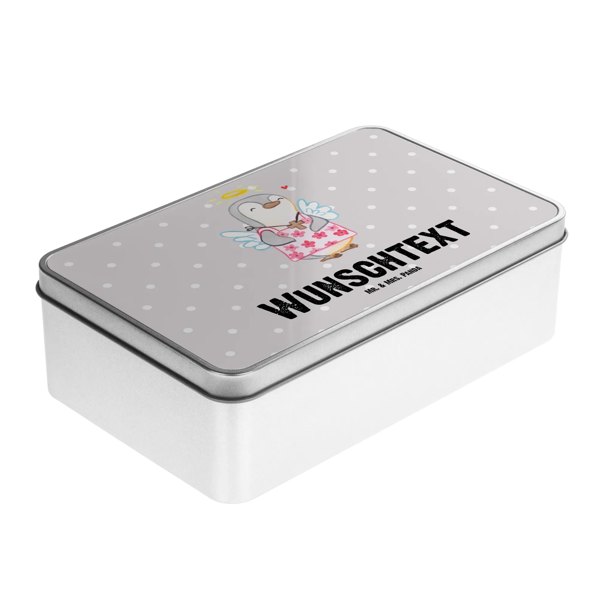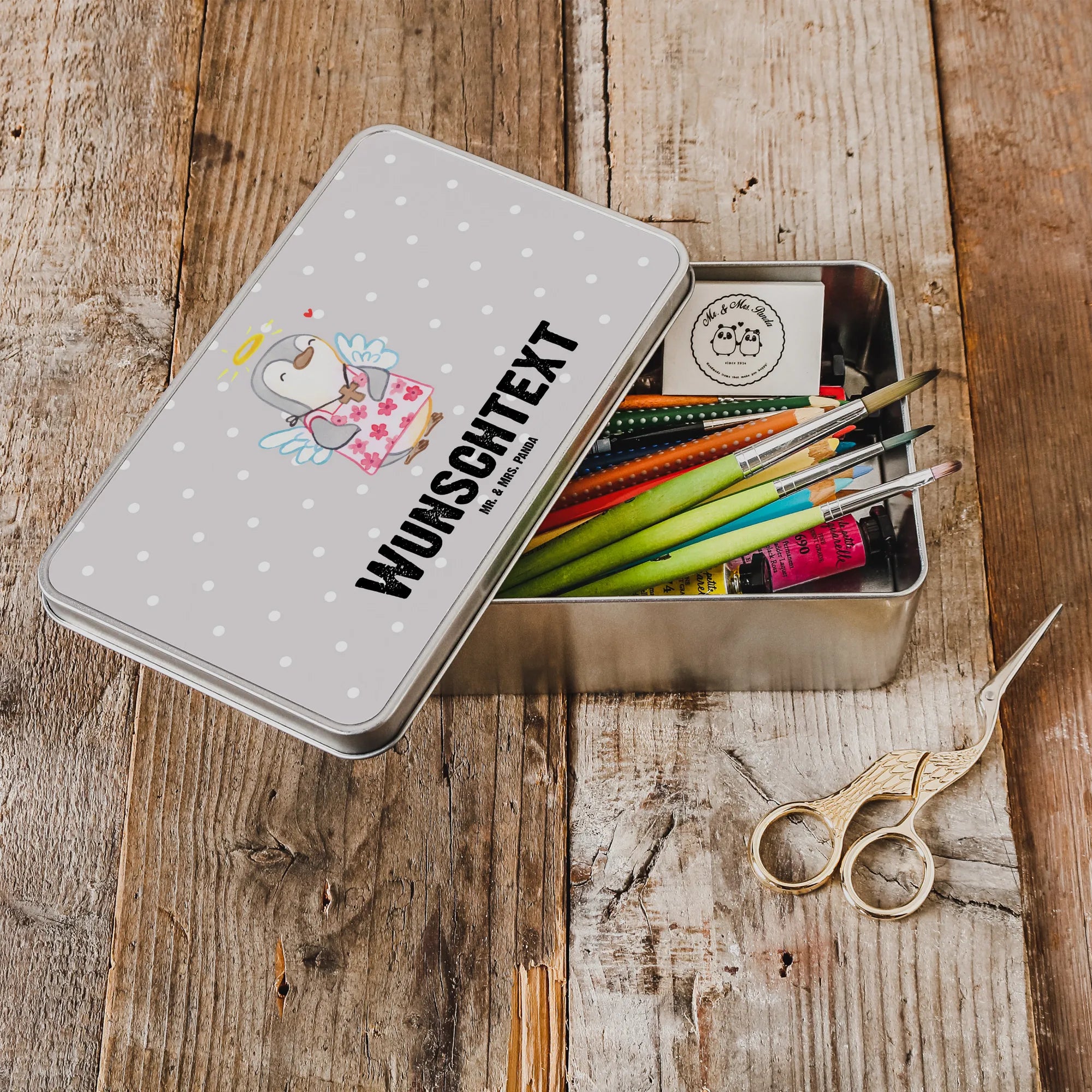 Mach dein Leben bunter mit der personalisierten Metalldose von Mr. & Mrs. Panda! Diese Rechteckdose hat die Maße von 198 mm x 128 mm x 50 mm und ein Gewicht von 180 g und ist aus hochwertigem Metall gefertigt. Sie ist stabil und langlebig und bietet dir viel Platz für Kekse oder Erinnerungen. Die bezaubernden Motive und Sprüche sind ein echter Hingucker und lassen sich mit deinem persönlichen Wunschtext oder Namen individuell gestalten. Ob als Geschenk oder zur eigenen Nutzung – die Dose eignet sich perfekt, um alles Wichtige ordentlich aufzubewahren. Ihre glänzende Oberfläche macht sie zu etwas ganz Besonderem. Bitte spüle die Dose von Hand, um ihre Schönheit zu bewahren.