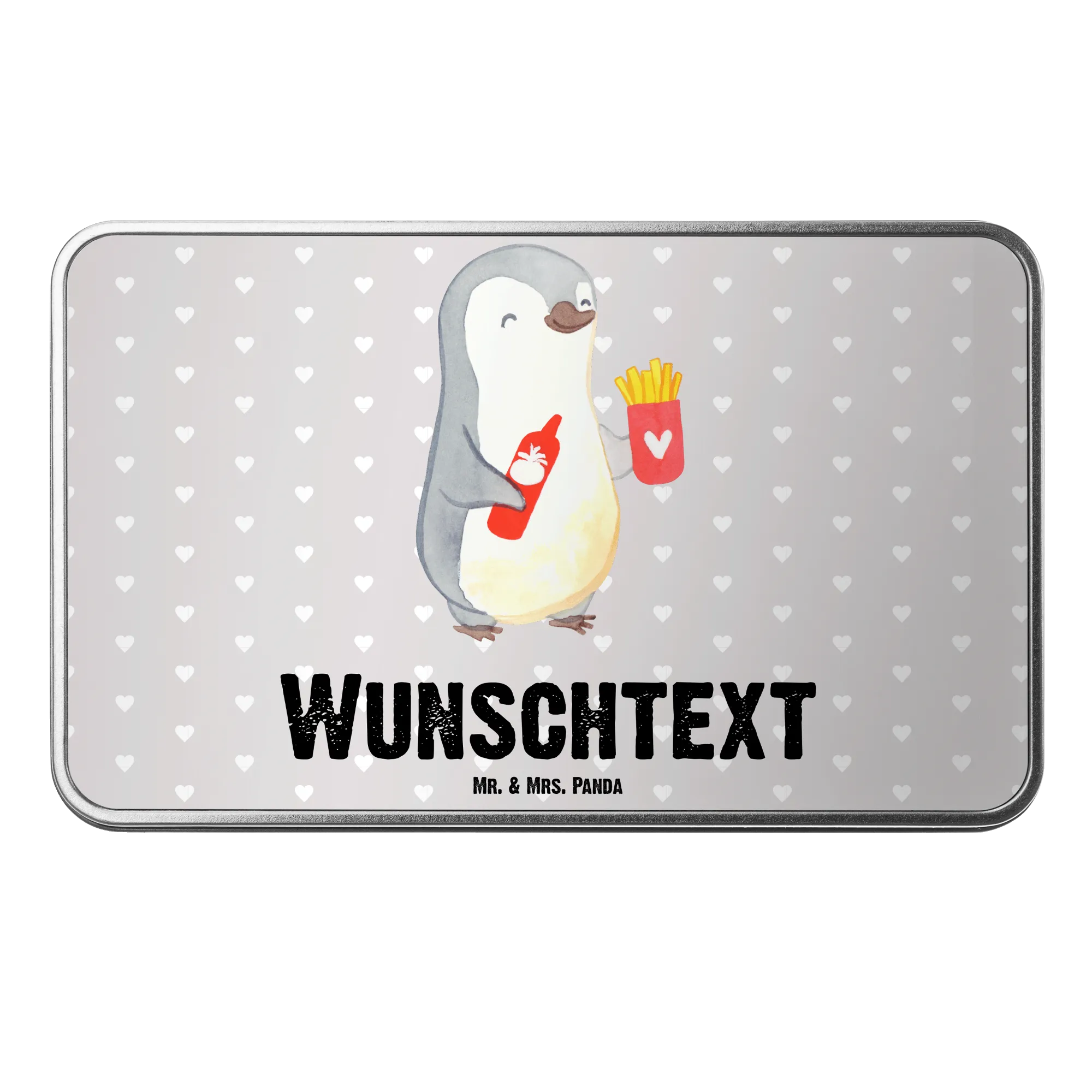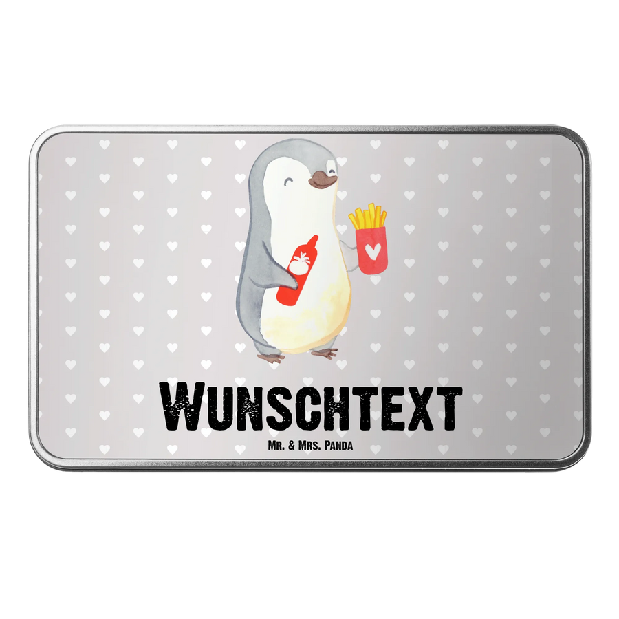 Die personalisierte Metalldose "Pinguin Pommes" von Mr. & Mrs. Panda ist das perfekte Geschenk für deine Liebsten! Ob Valentinstag, Hochzeitstag oder einfach nur so – diese zauberhafte Dose bringt ein Lächeln auf jedes Gesicht. Mit dem süßen Pinguin, der seine Pommes gerne teilt, symbolisiert sie die Liebe auf besondere Art und Weise. Sie kann mit einem Wunschtext personalisiert werden, sodass sie zu einem einzigartigen Liebesbeweis wird.