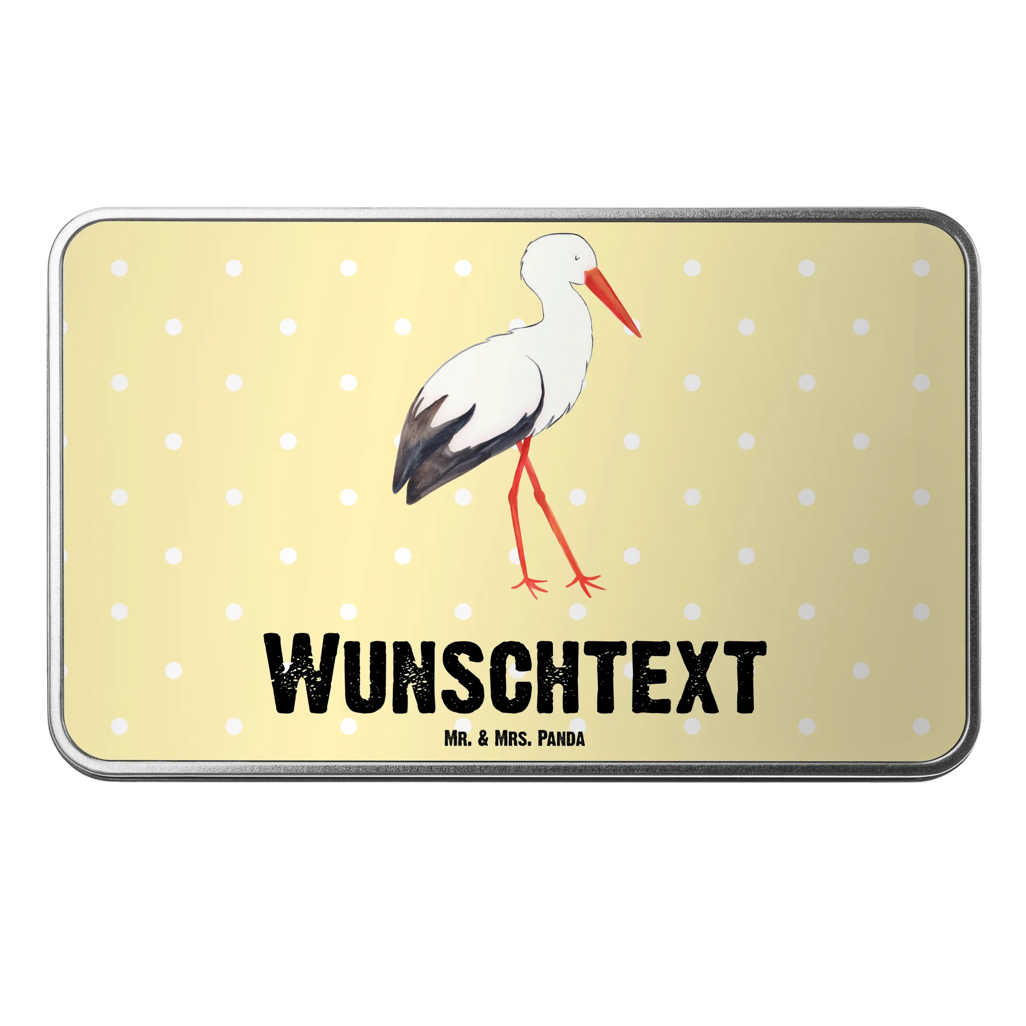 Entdecke die personalisierte Metalldose mit dem süßen Storch-Motiv von Mr. & Mrs. Panda! Diese Dose ist nicht nur ein toller Aufbewahrungsort für kleine Schätze, sondern auch ein liebevolles Geschenk für werdende Mütter oder frischgebackene Eltern.