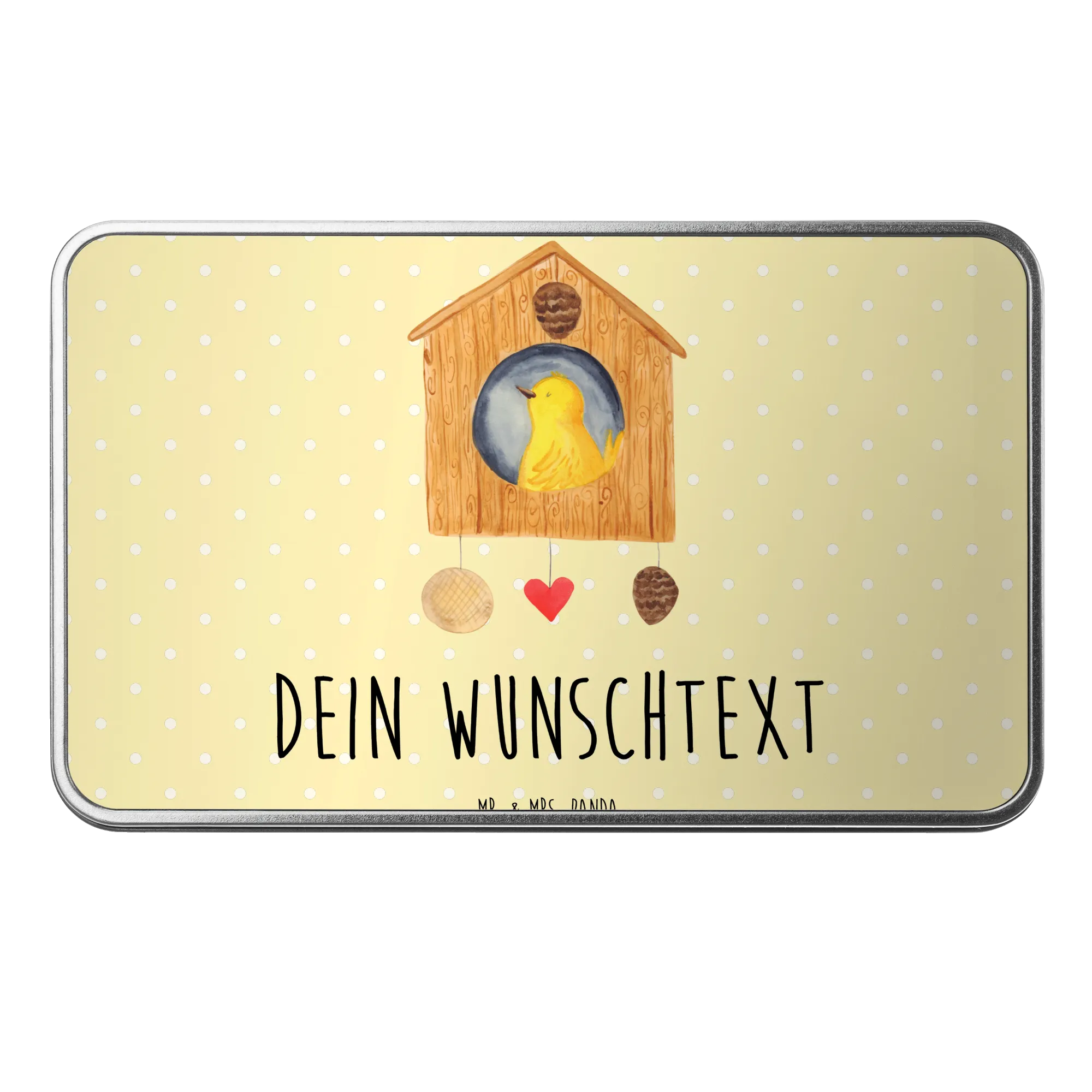Schenke Freude und Wärme mit unserer personalisierte Metalldose im zauberhaften Vogelhaus-Design der Kollektion Small World! Diese wunderschöne Dose ist nicht nur ein echter Hingucker, sondern auch eine herzliche Botschaft. Mit dem süßen Motiv eines gelben Vogels, der zufrieden in seinem Vogelhaus sitzt, vermittelt sie ein Gefühl von Zuhause und Geborgenheit. Die Nest-Metaphern machen sie perfekt für all jene, die ihren eigenen Lieblingsort zelebrieren möchten, sei es das eigene Heim, die Wohnung oder ein geliebtes Castle.