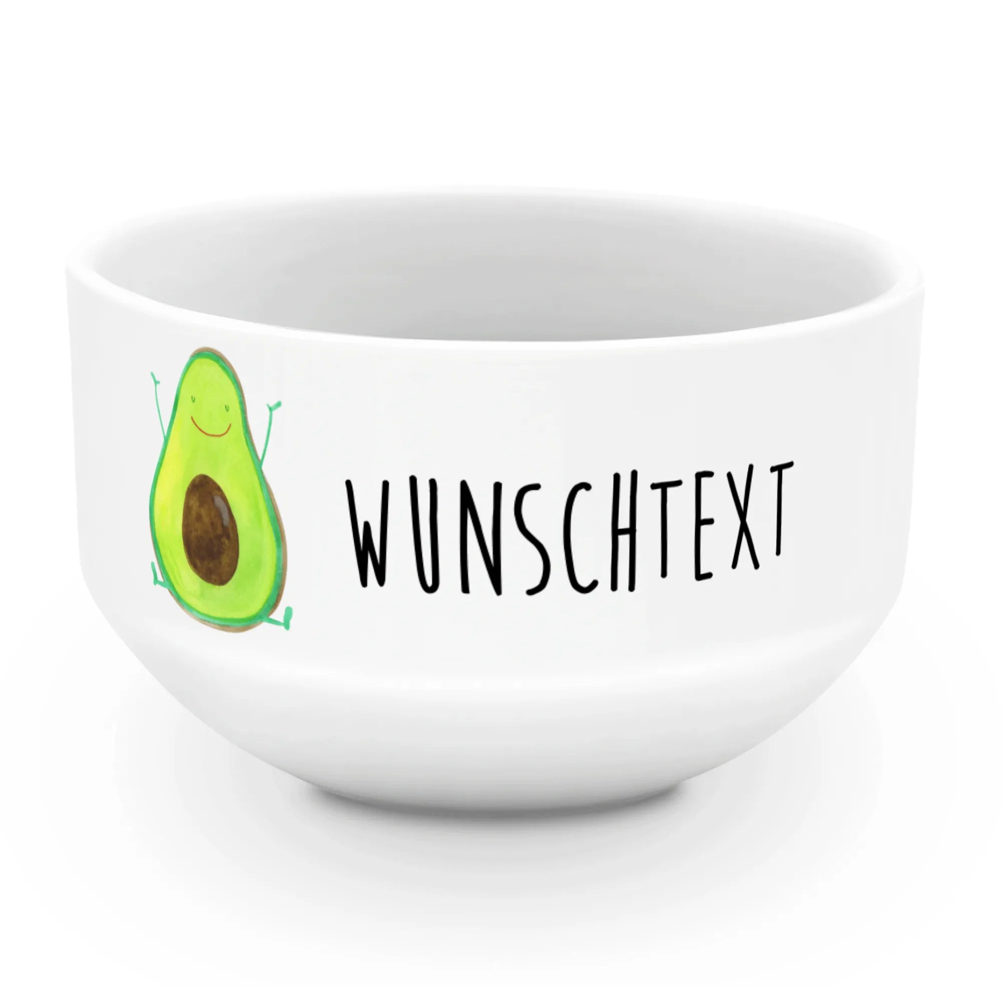 Mach dein Frühstück zu einem besonderen Erlebnis mit unserer personalisierten Müslischale 'Avocado Happy' aus der Avocado Kollektion von Mr. & Mrs. Panda. Diese fröhliche Schüssel aus hochwertigem Porzellan zeigt eine niedliche Avocado, die begeistert ihre Arme nach oben hält und bringt ein Lächeln in deinen Morgen.