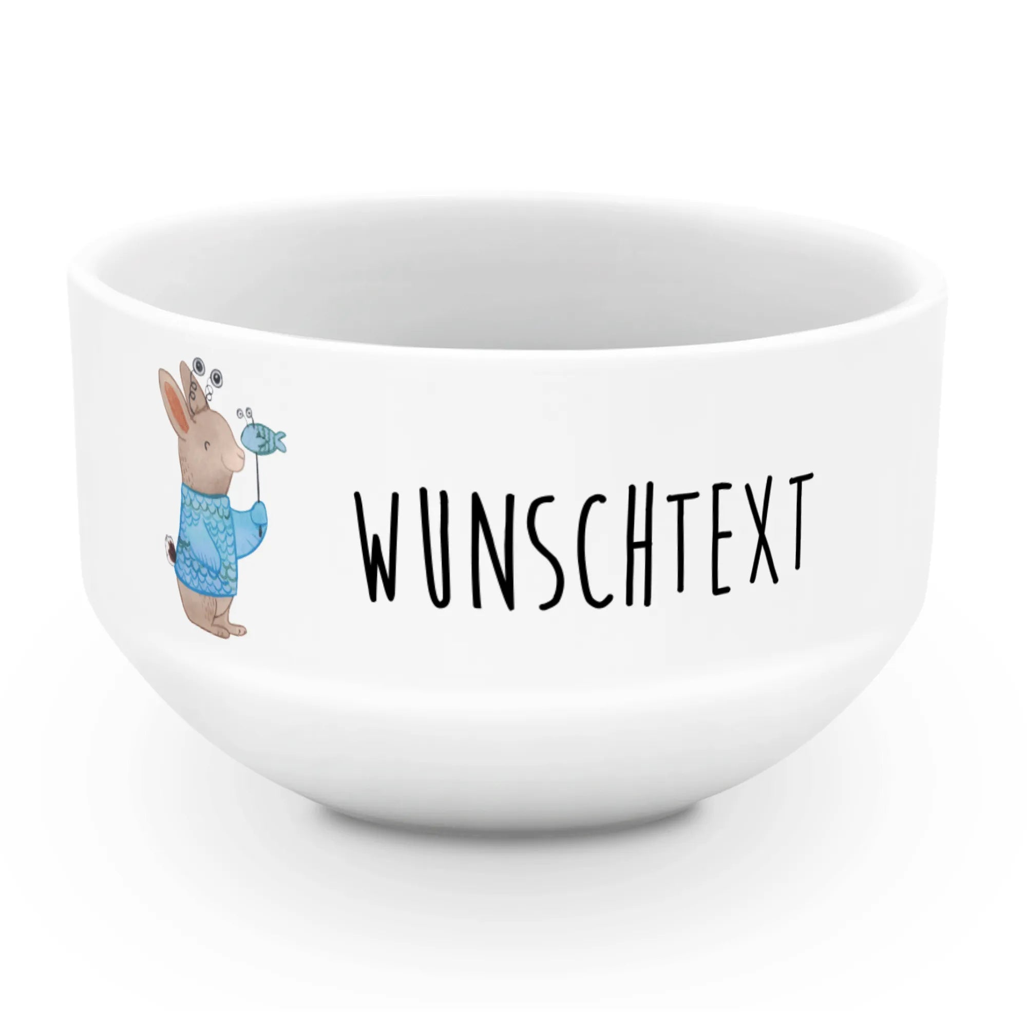 Die Schüssel ist mit einem bezaubernden Motiv versehen, das den süßen Hase in einem Fischkostüm zeigt und verleiht deinem Tisch eine spielerische Note. Egal, ob du deine Müslischale mit einem Namen oder einem individuellen Spruch personalisieren möchtest, sie wird in jedem Fall zu einem einzigartigen Unikat.