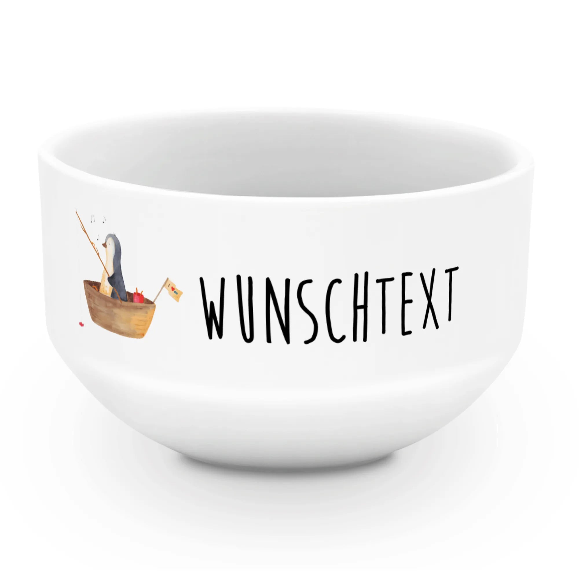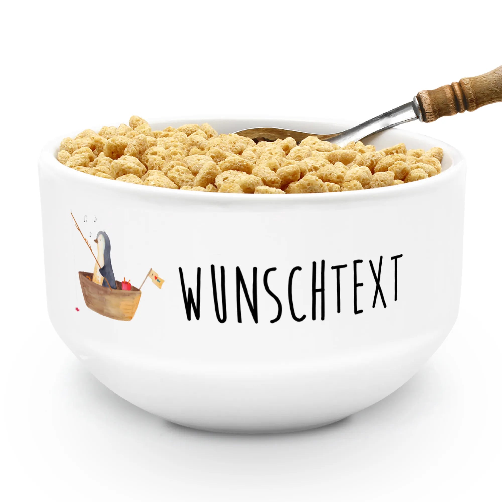 Personalisierte Müslischale Pinguin Angelboot