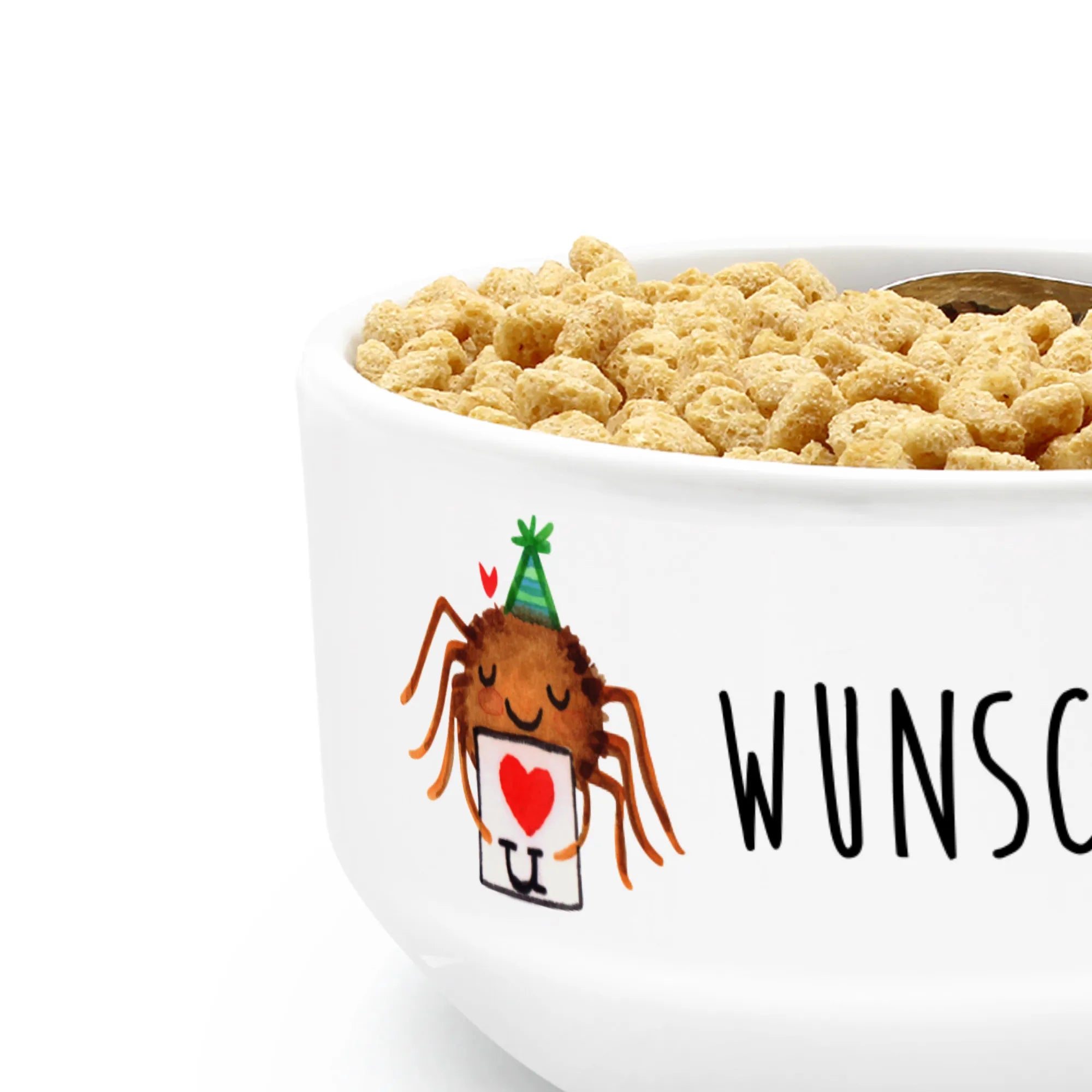 Mach jemandem eine Freude und zeige deine Liebe auf eine einzigartige Weise – mit der personalisierten Müslischale "Spinne Agathe Brief" von Mr. & Mrs. Panda! Es ist mehr als nur eine Schüssel; es ist ein romantischer Liebesbeweis.