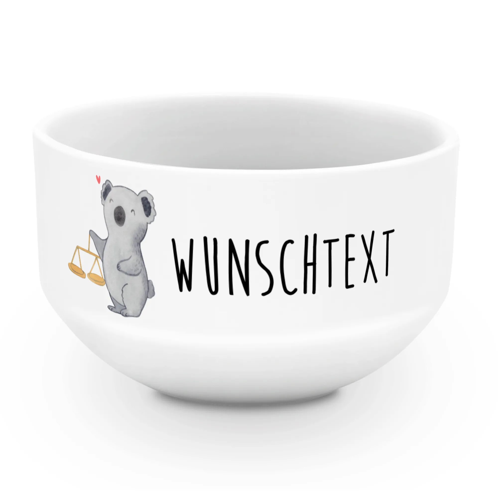Das Motiv zeigt einen niedlichen Koala neben einer klassischen Balkenwaage, die das astrologische Zeichen symbolisiert. Ein kleines rotes Herz erhöht den Charme und die Liebe dieser Schale.Perfekt geeignet als Geschenk zum Geburtstag oder auch einfach für zwischendurch, um einem lieben Menschen eine Freude zu bereiten. Die personalisierte Müslischale ist aus hochwertigem Porzellan gefertigt und sorgt für ein stilvolles Frühstückserlebnis. Sie hat einen Durchmesser von 135 mm und eine Höhe von 135 mm, was sie zur idealen Größe für Müsli, Salate, Obst oder Snacks macht. Jedes Mal, wenn du diese Schüssel benutzt, wird sie dich daran erinnern, wie wichtig Balance und Schönheit im Leben sind – ganz im Sinne der Waage! Mit dem Spruch 'Im Herzen einer Waage, wo Gleichgewicht und Schönheit wohnen' wird diese Schale zu einem inspirierenden Teil deiner Küchenausstattung.