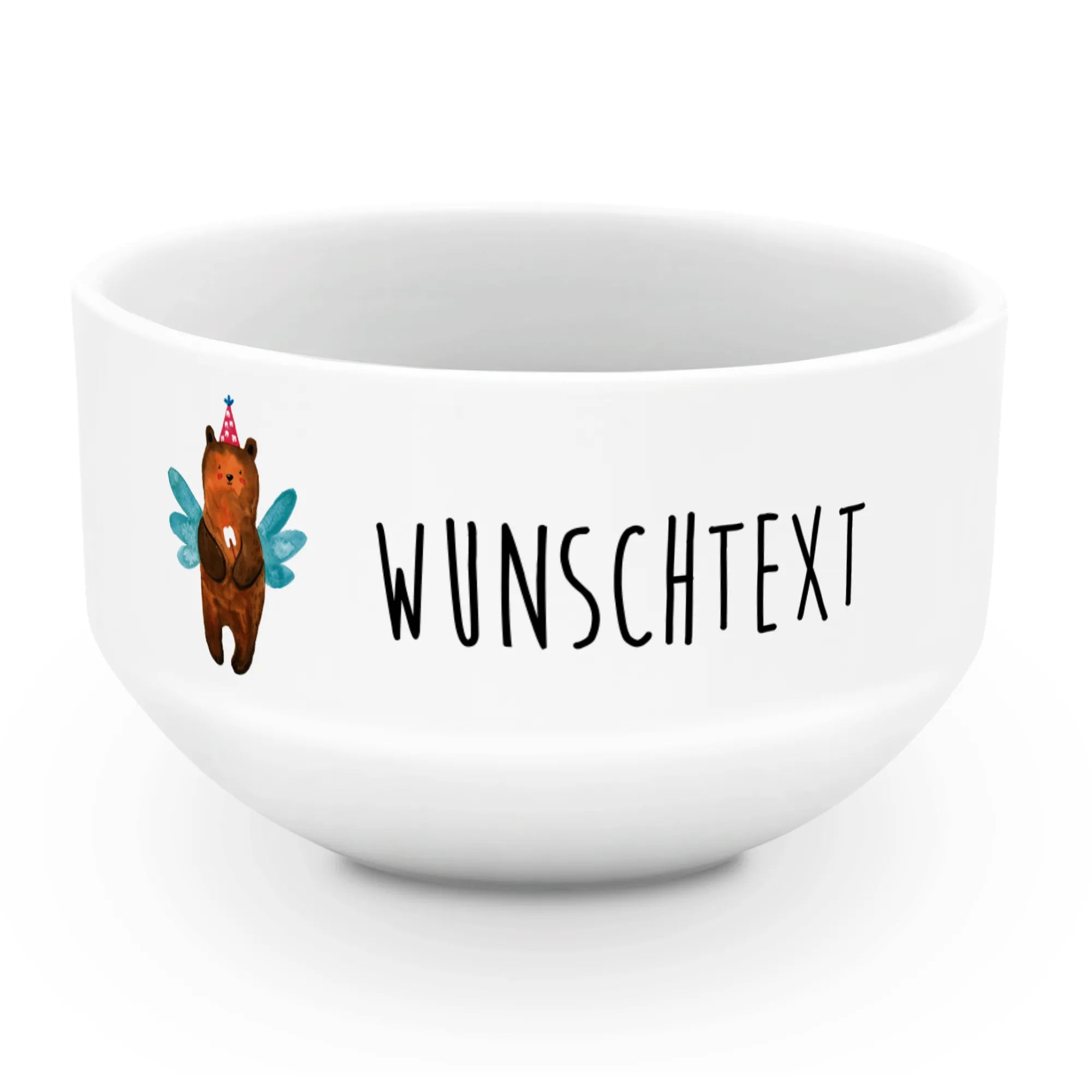 Die Müslischale ist ein wunderbares Geschenk zur Einschulung oder zur Feier des ersten Zahns – ein kleines Andenken, das sicher viele schöne Erinnerungen wecken wird. Mache das Frühstück zu einem magischen Erlebnis mit der personalisierten Müslischale Zahnfee Bär und lasse das Kind in eine zauberhafte Welt eintauchen.