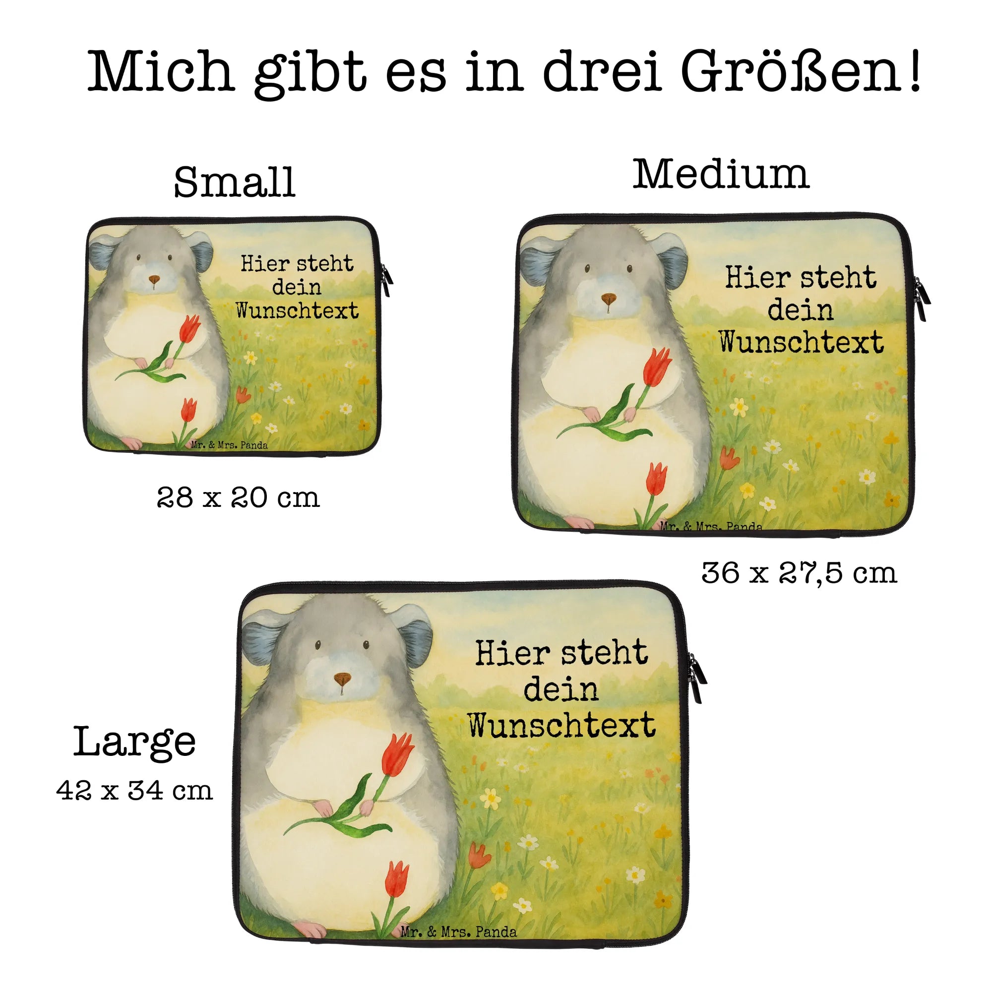 Personalisierte Notebook Tasche Chinchilla Blume Design - 20 x 28 cm